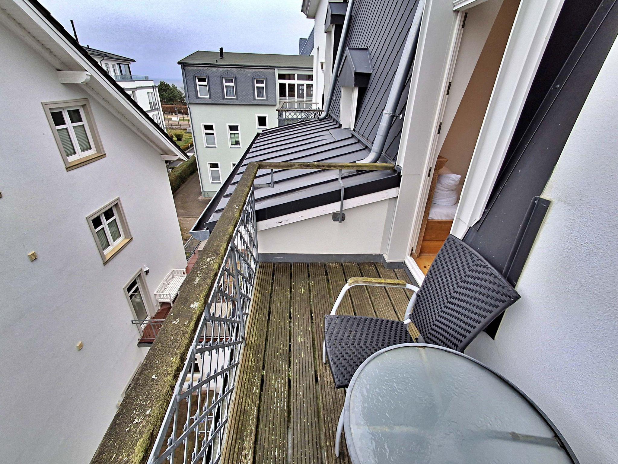 • Möblierter Balkon, zugänglich vom Schlafzimmer, zum Entspannen an der frischen Ostseeluft