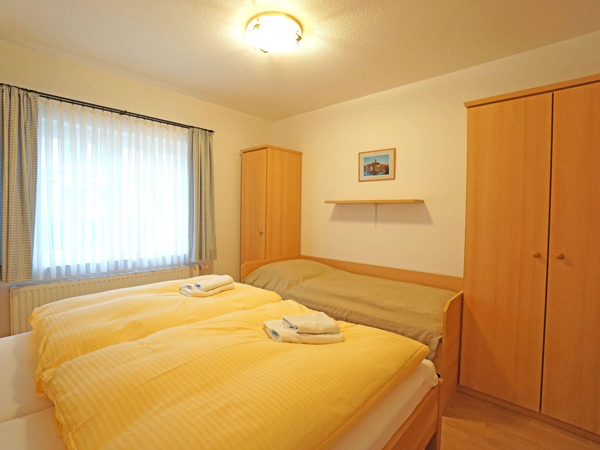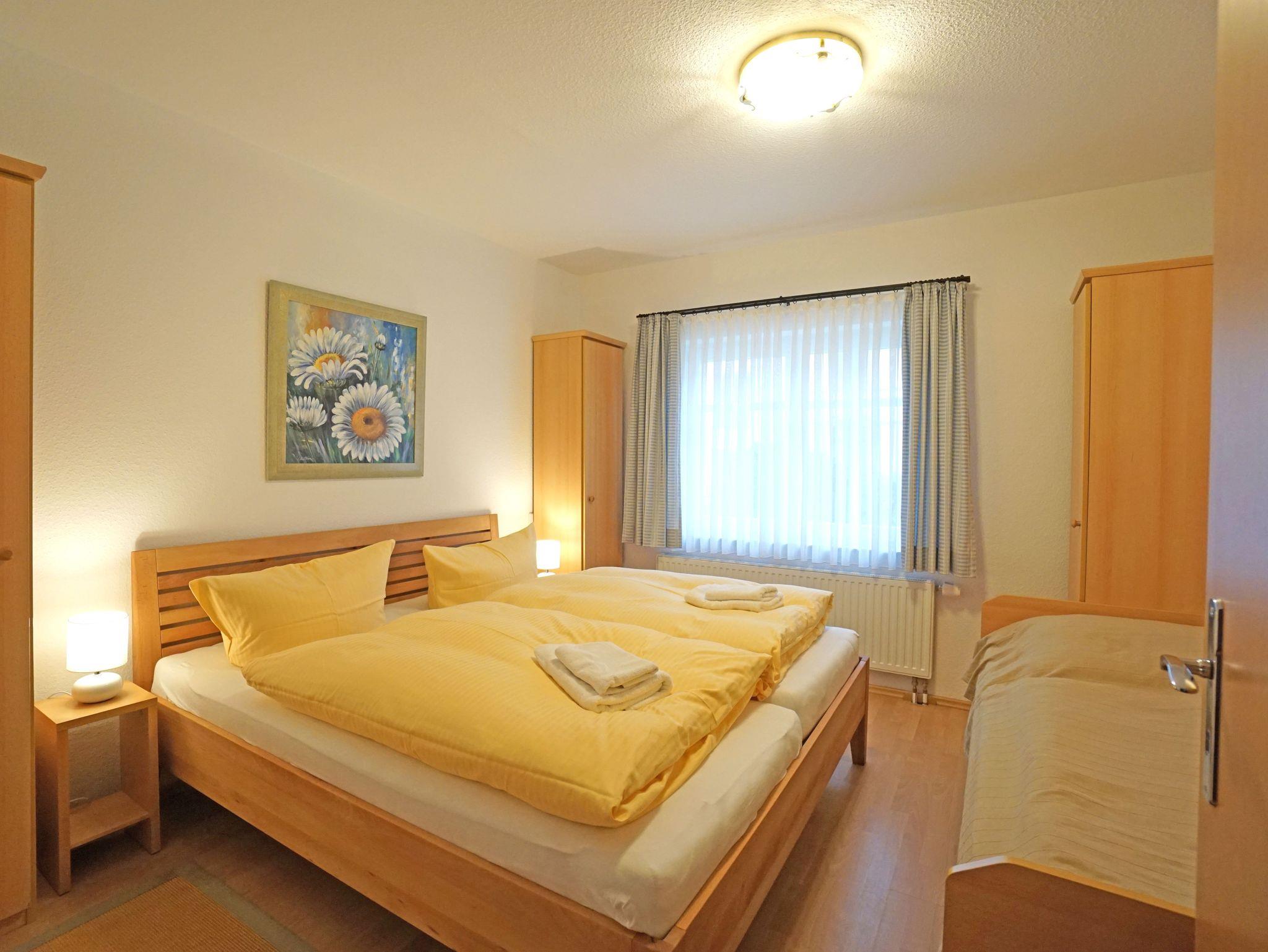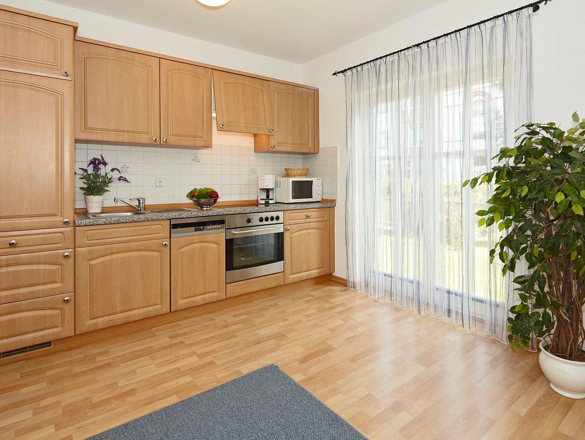 Die hochwertig eingerichtete 2-Zimmer-Ferienwohnung verfügt über ein komfortabel eingerichtetes Wohnzimmer (Flachbildfernseher, DVD-Player, etc.) mit einer komplett ausgestatteten Küchenzeile (Geschirrspüler, Mikrowelle, etc.). Im Erkerbereich des Wohnzimmers befindet sich der Esstisch. Das Schlafzimmer ist mit einem Doppelbett sowie einem Einzelbett ausgestattet (neues Doppelbett 2025). Für Raucher gibt es eine Miniterrasse vor dem Wohnzimmer.