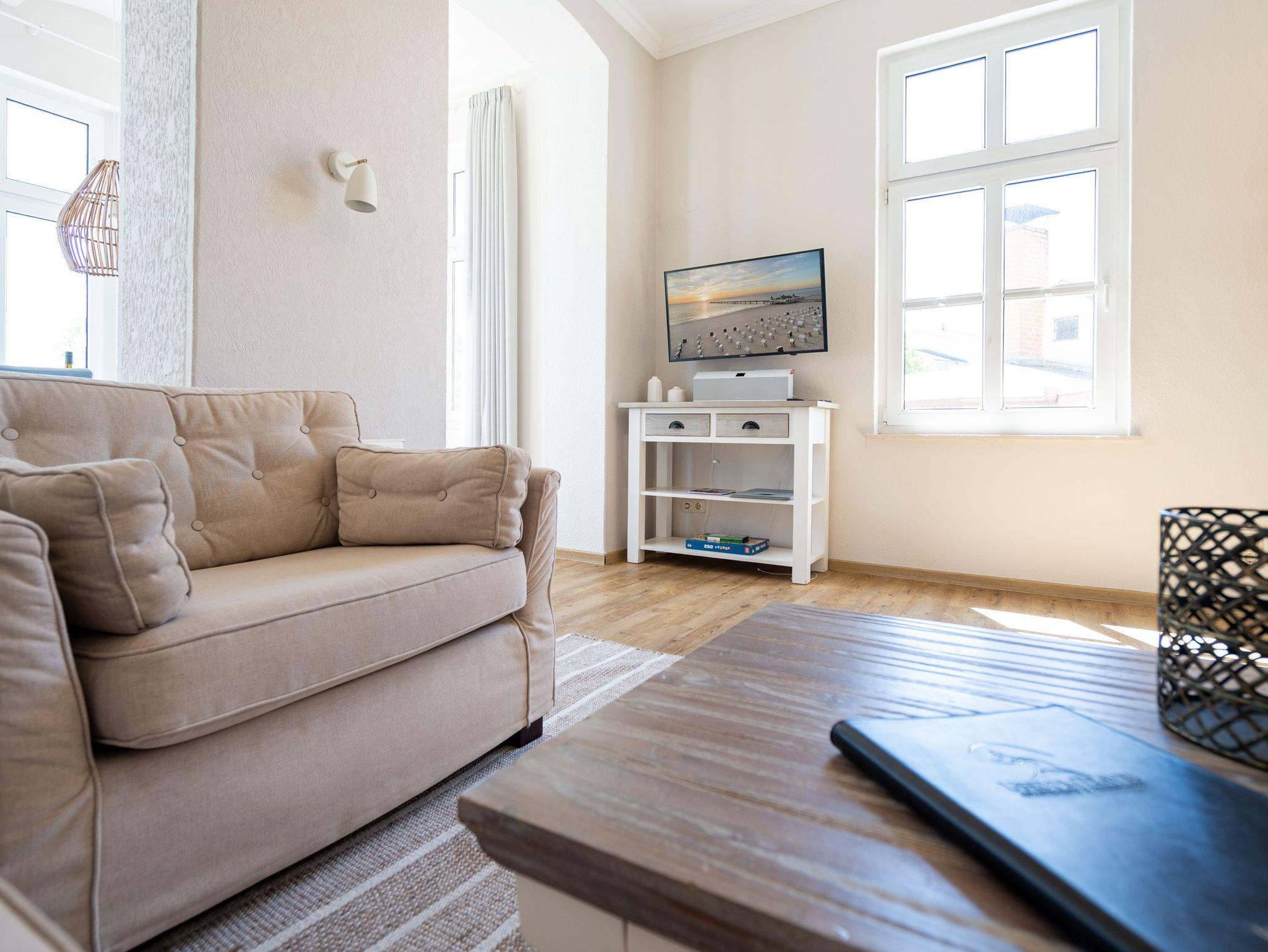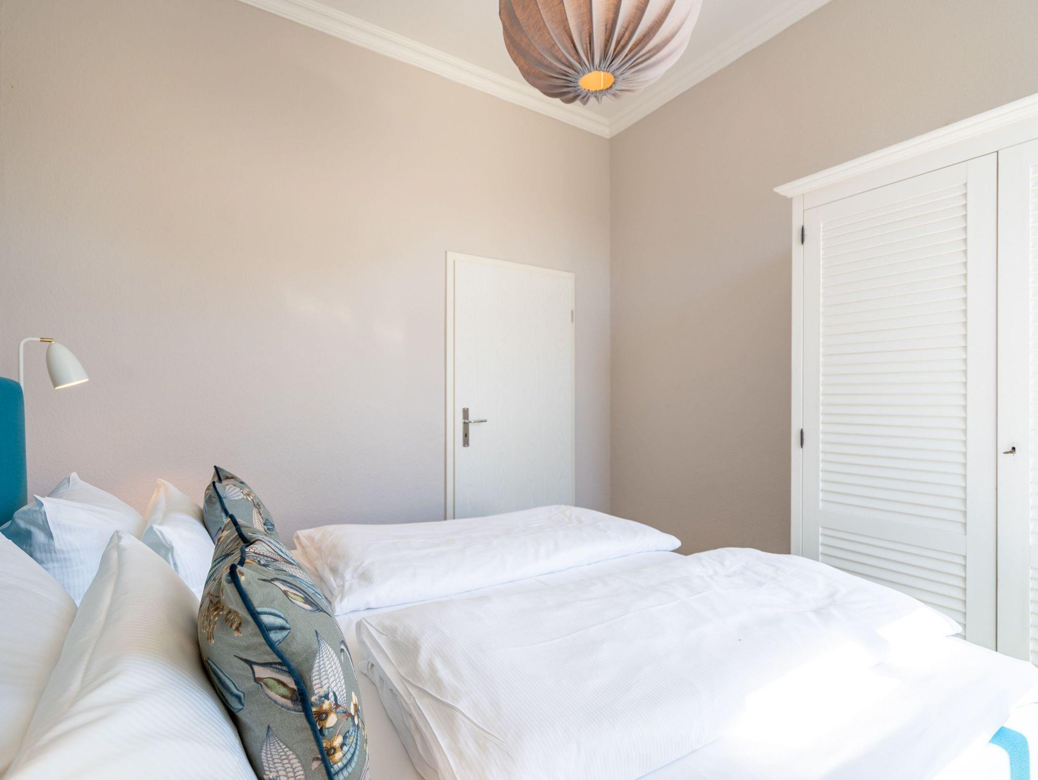Von der schönen großen Terrasse aus können Sie an schönen Tagen vollauf die frische Seeluft genießen. Denn die Ostsee ist nur ein paar Meter entfernt. Lassen Sie sich in das Rauschen der Wellen fallen und schalten Sie einmal vollkommen ab. Vom Frühling bis in den Herbst hinein ist die Terrasse mit Gartenmöbeln und Strandkorb bestückt, so dass Sie hier schon zum Frühstück in der Sonne sitzen können. Die ganze Wohnung Nummer 1 in der Villa Albertine lädt auf ihren 80 Quadratmetern nur dazu ein, sich in ihr wohlzufühlen. Hier können Sie mit bis zu sechs Personen entspannt Urlaub machen. Drei Schlafzimmer mit komfortablen Boxspringdoppelbetten ausgestattet, schenken Ihnen erholsame Träume. Große Schränke bieten viel Ablagefläche. Kommen Sie in der schönen und offenen Wohnküche zu gemeinsamen Mußestunden beim Relaxen auf der bequemen Sitzgruppe oder zum genussvollen Dinieren zusammen. Die Küche bietet alles, was Sie für die Zubereitung eines schönen Essens benötigen. Hochwertige Geräte und erlesenes ASA-Geschirr sorgen dafür, dass das Kochen Spaß macht. Eine helle und zum Wohnzimmer hin offene Veranda lässt Sie eintauchen in die mondäne Zeit der Bäderarchitektur. Hier können Sie am großen Esstisch wunderbare Auszeitstunden verbringen. Die Wohnung verfügt über zwei Dusch-Bäder. Bei Ihrer Anreise sind die Betten bereits bezogen und Handtücher liegen bereit. In der Tiefgarage steht Ihnen für Ihr Auto ein Tiefgaragenplatz zur Verfügung.