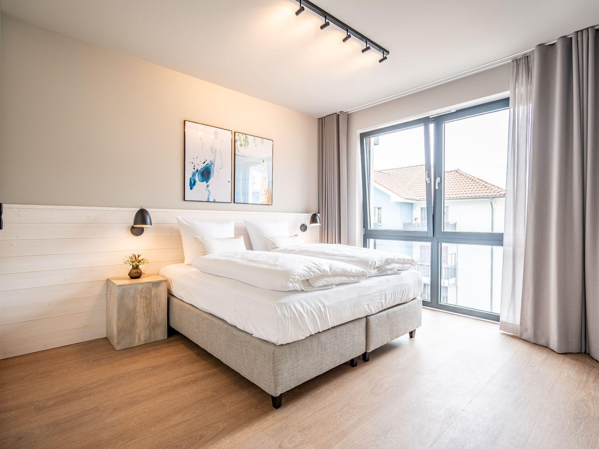 Die 2024 fertig gestellte Strandterrasse liegt direkt an der belebten Strandpromenade und bietet einen einzigartigen Ausblick auf die Grand Dame der historischen Seebrücken sowie die historische Konzertmuschel, einem beliebten Treffpunkt für Kunst und Kultur. Dahinter liegt die Ostsee ? ein Panorama, das zu den schönsten in den Kaiserbädern gehört. Es ist wie das Abtauchen in eine andere Zeit. In eine Zeit, in der man mit Stock, Sonnenschirm und Hut fürs „Sehen und gesehen werden“ über die Promenade schlenderte; aber auch in eine Zeit, in der ? damals wie heute ? Zeit einmal für eine kurze Weile keine Rolle spielt. Weil man angekommen ist im Loslassen, Entspannen und Genießen. Es ist dieser besondere Geruch nach Meeresluft und Freiheit, der in Erinnerung bleibt. Dazu die Bilder, die man mitnimmt. Von langen Strandspaziergängen, vom Lachen in fröhlich schäumenden Ostseewellen, von der Zeit in einem wunderschönen Urlaubsdomizil. Denn genau das ist die Strandterrasse mit ihren 56 modernen und exklusiven Ferienappartements direkt gegenüber der Ahlbecker Seebrücke. Die Ein-, Zwei- oder Dreizimmerwohnungen ? zwischen 40 und 70 Quadratmeter groß ? sind von einer Innenarchitektin gemeinsam mit unserem Erfahrungsschatz an Gästewünschen mit viel Liebe zum Detail und ganz individuell konzipiert worden. Entspannung und Wohlfühlen stehen an erster Stelle. Alles ist aufeinander abgestimmt und sorgt für eine gemütliche Atmosphäre. Wählen Sie zwischen einem Domizil in einem hellen, sandfarbenen Designkonzept oder einem Appartement mit anthrazitfarbenen Farbakzenten. Alle Appartements verfügen gleichermaßen über eine stilvolle und komfortable Einrichtung, die passgenau angefertigt worden ist, sowie über moderne Küchen und Bäder. Jedem Schlafzimmer ist ein eigenes Bad mit Dusche zugeordnet (außer App. B4.5). Die Appartements besitzen fast alle einen Balkon ? viele schauen sogar zur Ostsee hinaus. Die meisten Feriendomizile haben einen Elektrokamin und Infrarotsaunen. Im Erdgeschoss befindet sich ein separater Gemeinschaftsraum für Fahrräder. Außerdem besteht die Möglichkeit, im Gemeinschaftswaschraum 2 Waschmaschinen [&] Trockner zu nutzen. Ergänzt wird das Angebot durch eine Gemeinschaftssauna, die täglich von 11:00 bis 22:00 Uhr nutzbar ist. In der Tiefgarage (Einfahrtshöhe 2,03 Meter) steht für jede Wohnung 1 Pkw-Stellplatz zur Verfügung. Ist alles zur Zufriedenheit untergebracht? Dann kann der Urlaub ja beginnen. Und beim Blick vom Balkon über die Ostsee treffen sich zum Sonnenaufgang das Heute und das Damals. Gelassenheit legt sich beim Gang hinunter an den Strand auf die Seele. Jetzt darf die Zeit stehenbleiben.