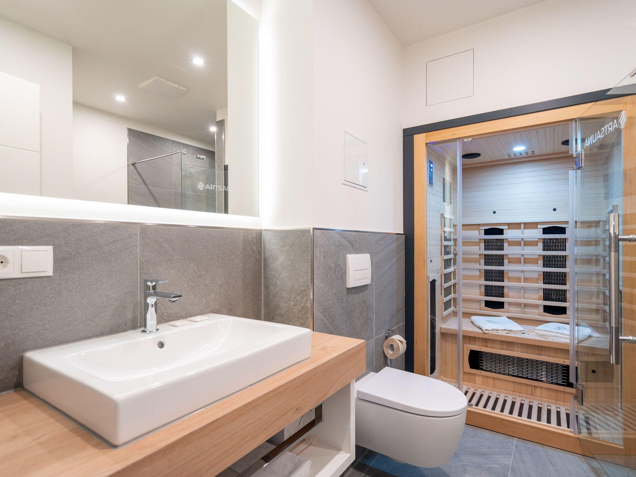 Willkommen im 2-Raum-Appartement B 2.6 (Haus B) in der Strandterrasse. Mittendrin, statt nur dabei können Sie bei diesem wunderschönen und gemütlichen Auszeitdomizil zu Recht sagen. Denn es befindet sich nur 80 Meter von der Ahlbecker Promenade und vom Strand entfernt. Die 53 Quadratmeter sind ein kuscheliges Auszeitzuhause für zwei Personen. Eine luftig leichte Atmosphäre empfängt Sie. Denn durch die großen Fenster fällt viel Licht in die Räume. Die Einrichtung ist in nordischem Design gehalten und birgt das Potential für viel Entspannung und Ruhe. Machen Sie es sich auf dem stylischen Sofa gemütlich. Genießen Sie den Blick auf den Elektrokamin (ohne Wärmeabgabe). Ein großer Flat-TV (50 Zoll) sorgt für echtes Heimkinofeeling. Vom Wohnzimmer aus haben Sie Zugang zum Süd-West-Balkon mit einem Tisch und zwei Stühlen. Auf ihm können Sie sich an der Sonnenseite der Insel erfreuen. Ob Frühstück oder Abendessen ? wenn das Wetter mitspielt, schmeckt es unter freiem Himmel doch gleich nochmal so gut. Zubereiten können Sie die Mahlzeiten in der zum Wohnzimmer hin offenen Küche. Sie ist mit hochwertigen Elektrogeräten und allem zum Kochen Nötigen voll ausgestattet. Ein schöner Esstisch lädt zu gemeinsamen Genuss-und Mußestunden ein. Doch zum Wichtigsten im Urlaub zählt bekanntlich ein erholsamer Schlaf. Das komfortable Boxspringdoppelbett (1,80m x 2,00m) im geräumigen Schlafzimmer bringt sie perfekt in süße Träume. Das Zimmer ist zudem mit einem Kleiderschrank und ebenfalls mit einem Flat-TV (50 Zoll) eingerichtet. Ein modernes Duschbad mit Waschtisch, Infrarotsaunakabine und WC komplettiert das Angebot. Zur Wohnung gehört ein PKW-Stellplatz in der Tiefgarage. Sie müssen also nur noch ankommen. Das Wohlfühlen setzt dann automatisch ein, wenn Sie die stilvolle Ferienwohnung betreten.