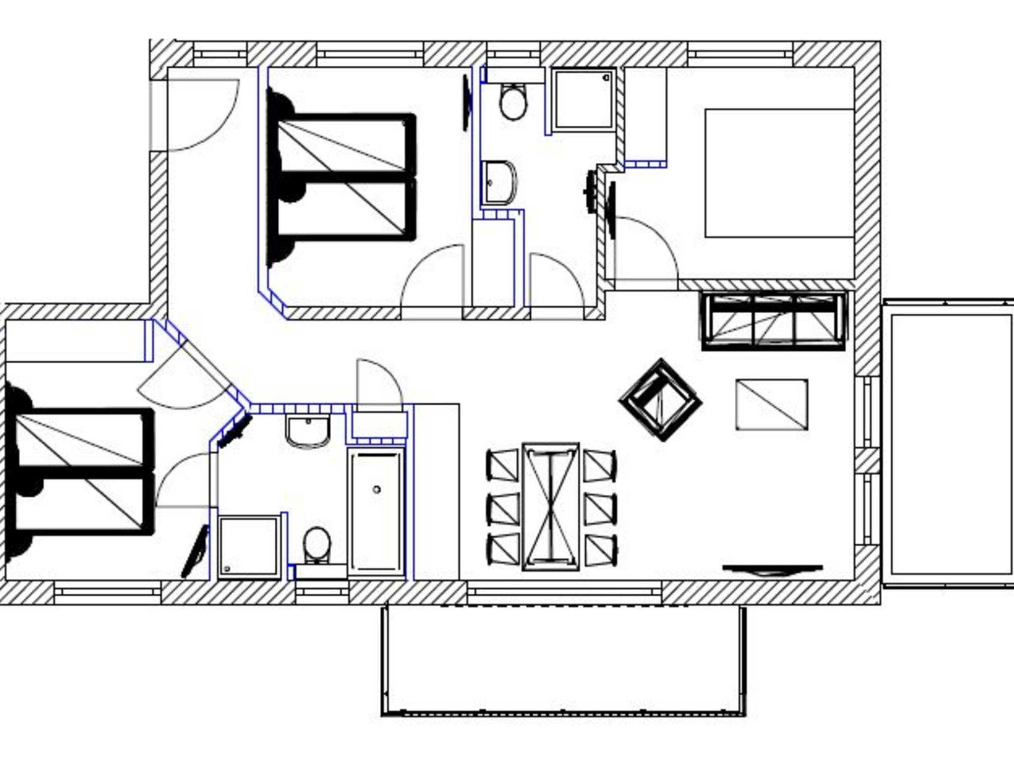Neubau 2018 mit Fußbodenheizung und zwei Balkonen (nach Süden und Osten). Die moderne und sehr komfortabel eingerichtete 4-Zimmer-Wohnung verfügt über drei separate Schlafzimmer. eines davon hat ein zugehöriges großzügiges ensuite-Bad mit Badewanne und Dusche. Die zwei weiteren Schlafzimmer teilen sich ein zusätzliches Duschbad. Vom Wohnzimmer mit Küchenzeile und Essplatz geht es auf beide Balkone. Die Wohnung verfügt weiter über einen Vorflur mit Garderobe und einen kleinen Abstellraum neben der Küche. Zur Wohnung gehört ein überdachter Pkw-Stellplatz auf dem Grundstück.