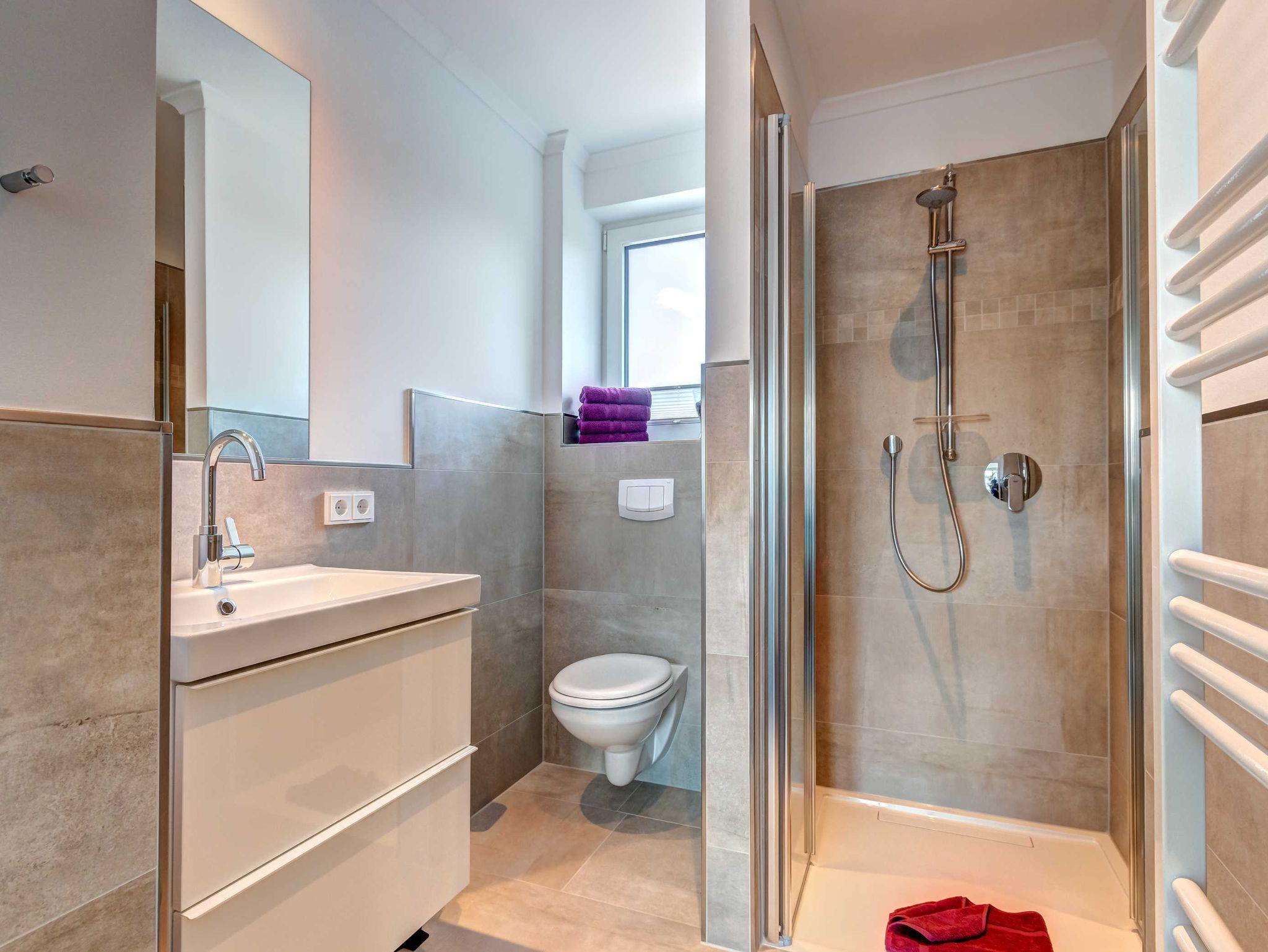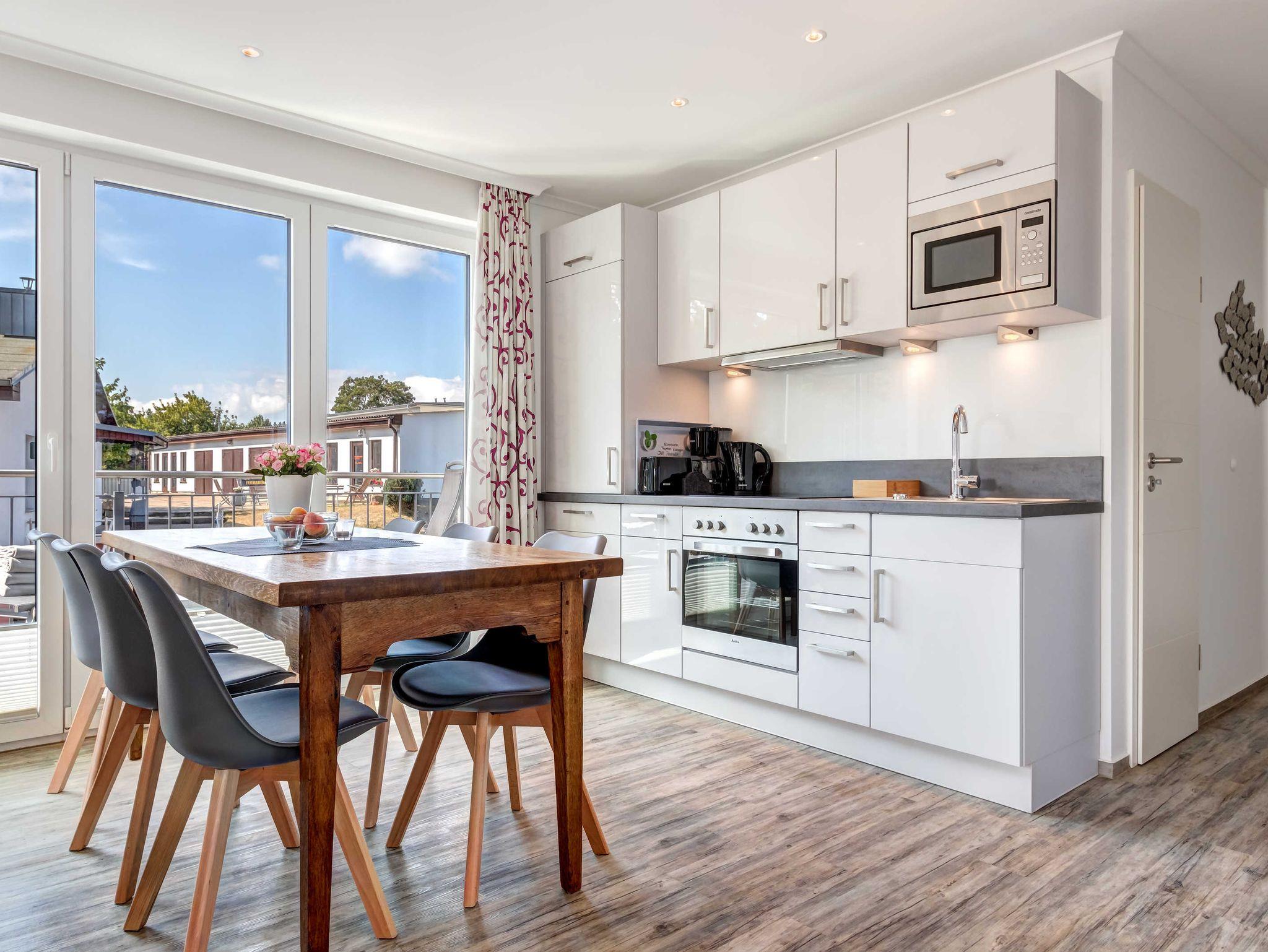 Neubau 2018 mit Fußbodenheizung und zwei Balkonen (nach Süden und Osten). Die moderne und sehr komfortabel eingerichtete 4-Zimmer-Wohnung verfügt über drei separate Schlafzimmer. Eines davon hat ein zugehöriges großzügiges ensuite-Bad mit Badewanne und Dusche. Die zwei weiteren Schlafzimmer teilen sich ein zusätzliches Duschbad. Vom Wohnzimmer mit Küchenzeile und Essplatz geht es auf beide Balkone. Die Wohnung verfügt weiter über einen Vorflur mit Garderobe und einen kleinen Abstellraum neben der Küche. Zur Wohnung gehört ein überdachter Pkw-Stellplatz auf dem Grundstück. Die Villa Teutonia liegt etwa 300m von der Strandpromenade entfernt. Zum Ortszentrum und der bekannten Ahlbecker Seebrücke sind es ca. 8-10 Minuten zu Fuß.