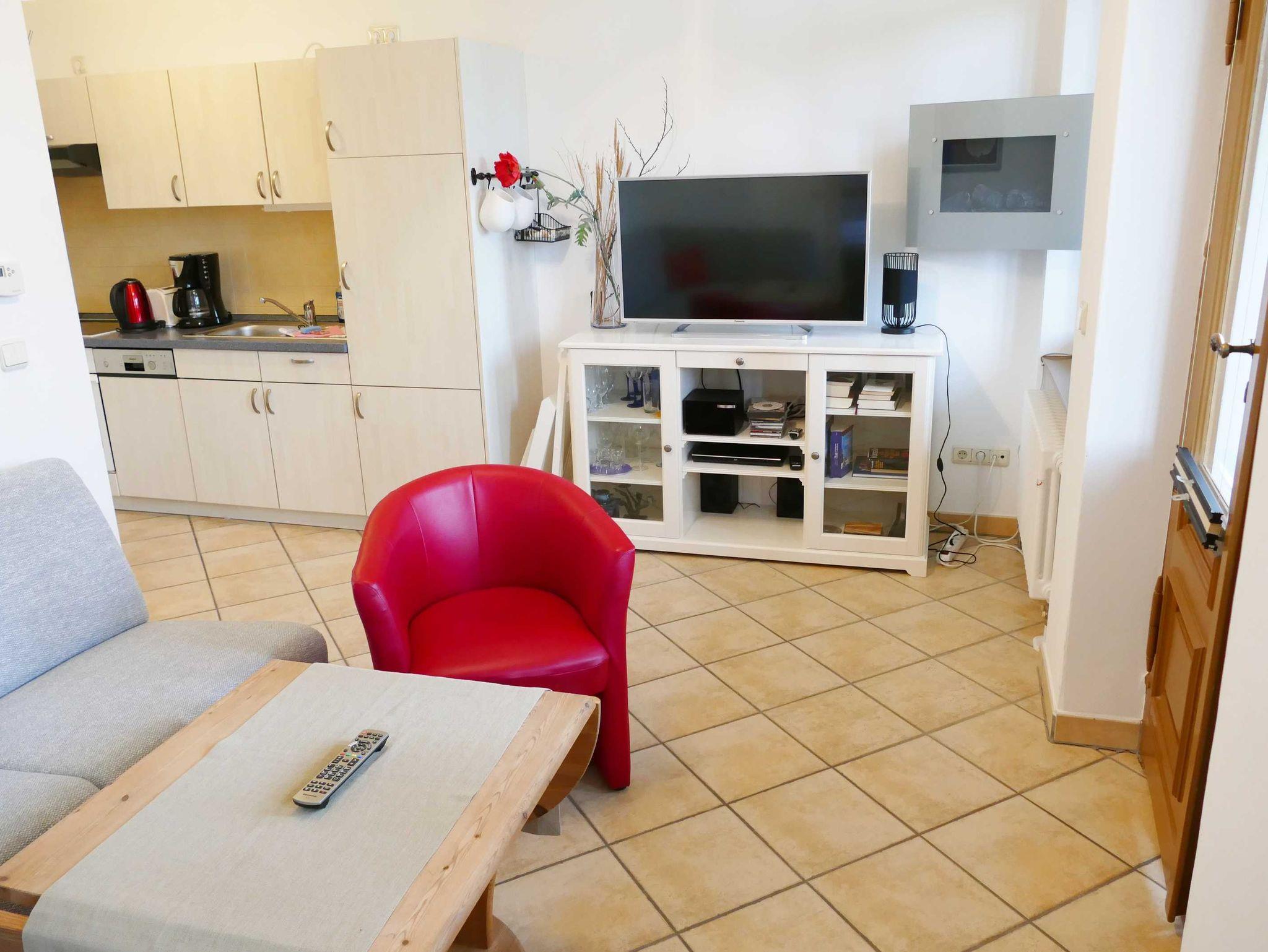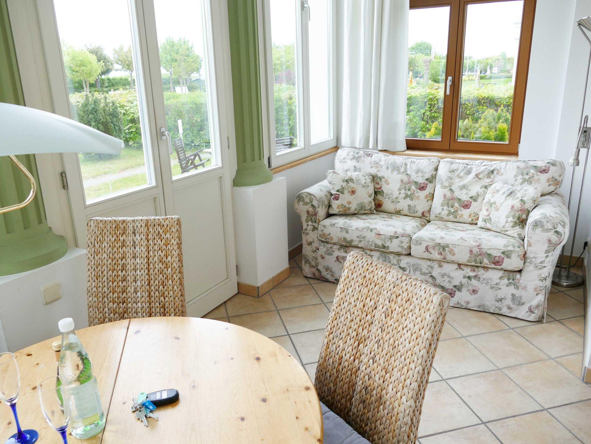 Die Ferienwohnung Nr. 2 befindet sich im Erdgeschoss des Hauptgebäudes der Villa Bella und hat eine Größe vom 47m². Sie verfügt über einen kombinierten Wohn-/Küchenbereich (Küchenzeile), mit Elektrokamin und einem großen Flachbildfernseher, ein Bad mit Dusche und WC sowie Erstausstattung von Toilettenpapier und Spülmittel, ein separates Schlafzimmer mit Doppelbett und eine schöne Loggia (Veranda) mit Blick in den Garten zur Ostseeseite. Der Essbereich befindet sich in der Loggia bzw. die Gäste können an schönen Tagen direkt im Garten vor der Villa die frische Seeluft genießen (Tisch und Stühle für den Garten stehen zur Verfügung). In der Loggia und im Wohnzimmer befinden sich jeweils eine gemütliche Couch-Garnitur zum Relaxen.