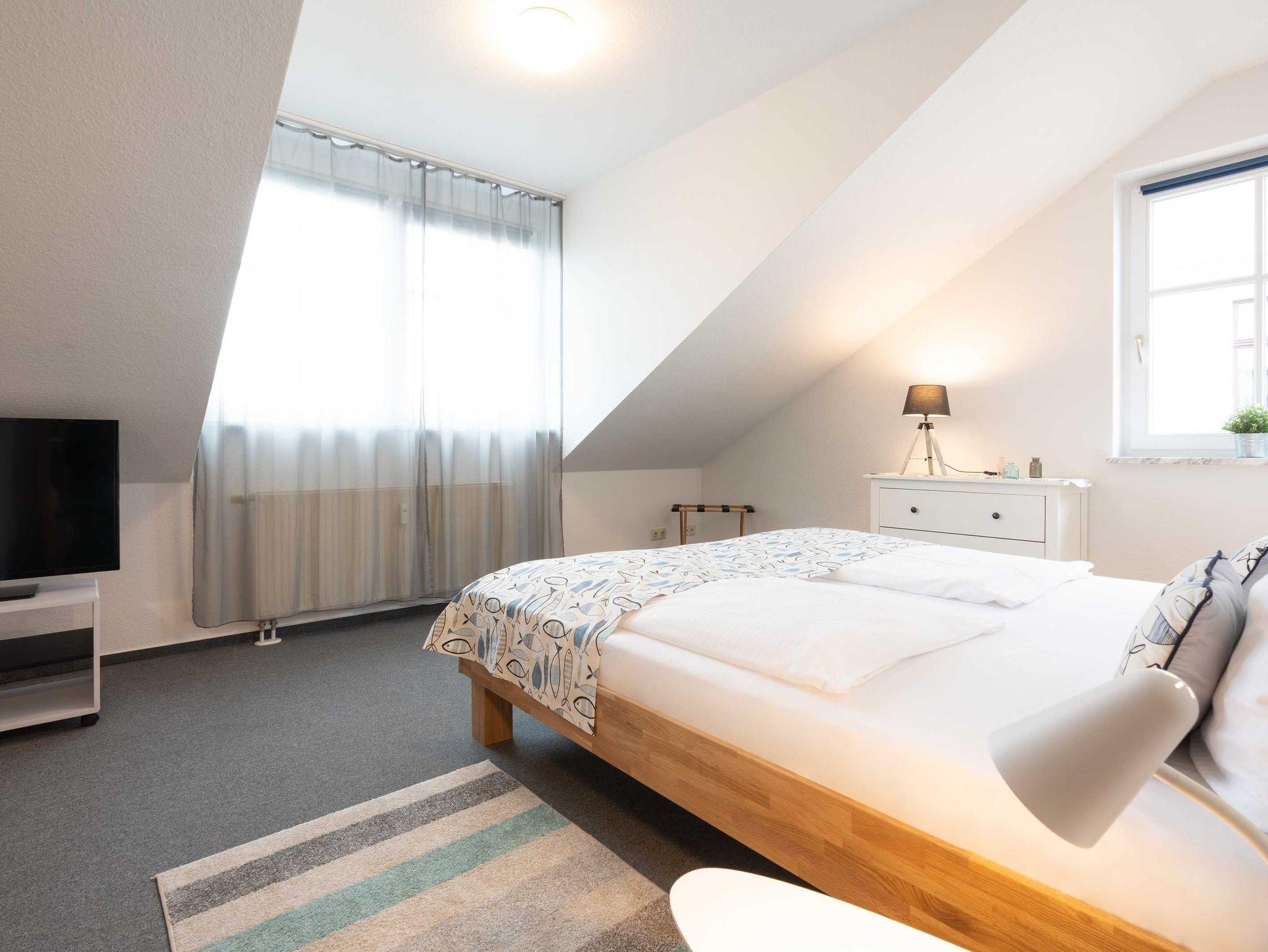 Unser Einzimmerapartment Möwennest lädt dazu ein, eine entspannte Zeit in Ahlbeck zu verbringen. In der kleinen modernen Küche können Sie sich ein leckeres Essen zubereiten. Selbstverständlich können Sie bei schlechtem Wetter auch im gemütlichen King Size Bett fernsehen. Das Bad verfügt über eine Dusche, Waschtisch, WC sowie einen Fön.