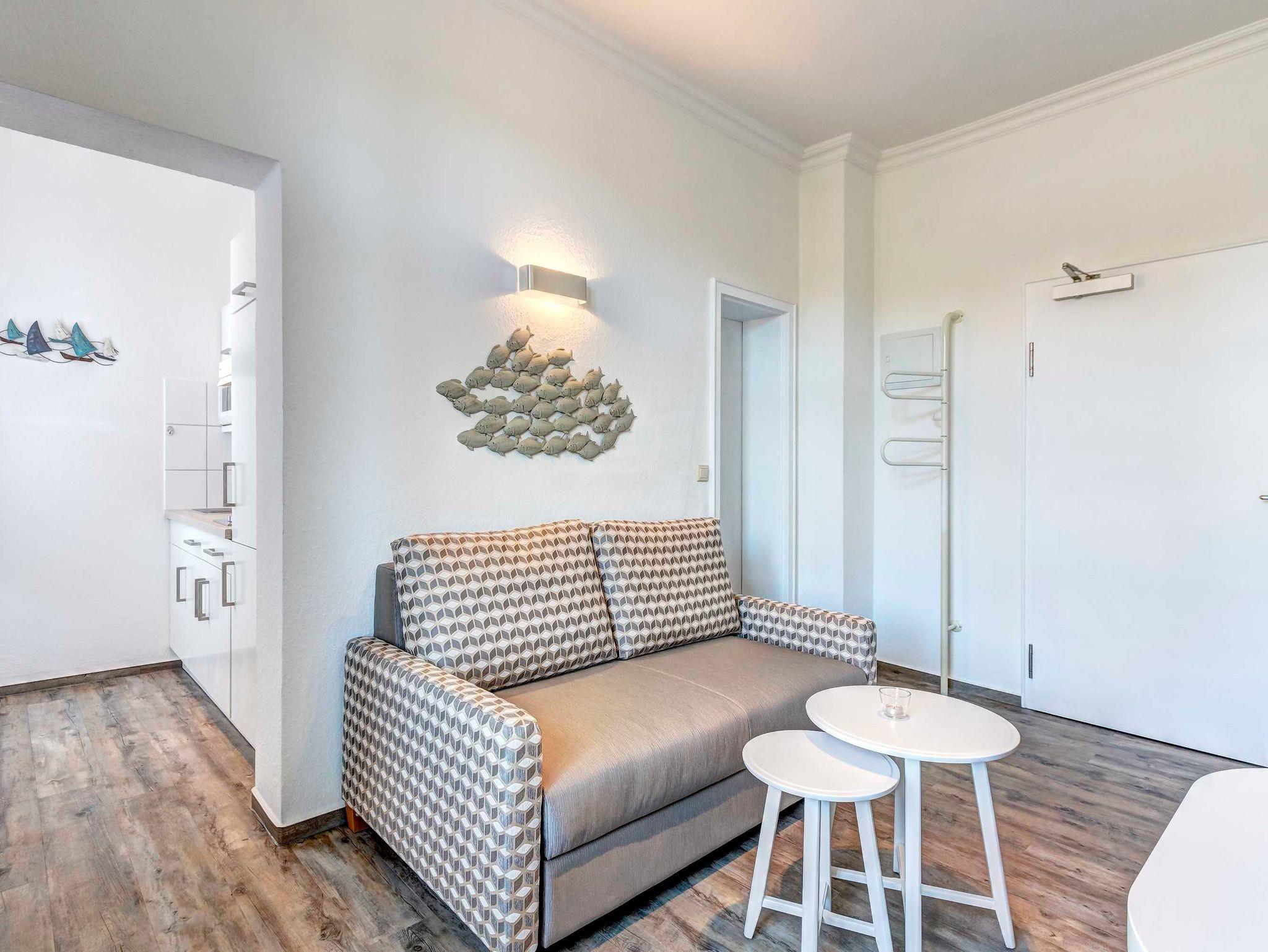 Direkt an der Strandpromenade - 1. Reihe mit SÜDBALKON - ein schönes 2 - Zimmer - Apartment im I. OG mit moderner Einrichtung, separater Küchennische, Duschbad, Südbalkon mit Sonne bis abends. Die Wohnung verfügt über einen Pkw-Stellplatz. In der Garage können Fahrräder und ähnliches untergestellt werden. Im Haus gibt es eine Sauna. Von der Villa Germania aus können Sie das Ortszentrum und die bekannte Ahlbecker Seebrücke in ca. 3 Minuten zu Fuß erreichen. Zum Strand sind es 50 m. Von Mai bis September ist ein Strandkorb im Tagespreis enthalten im Jahr 2025, ab 2026 nicht mehr.