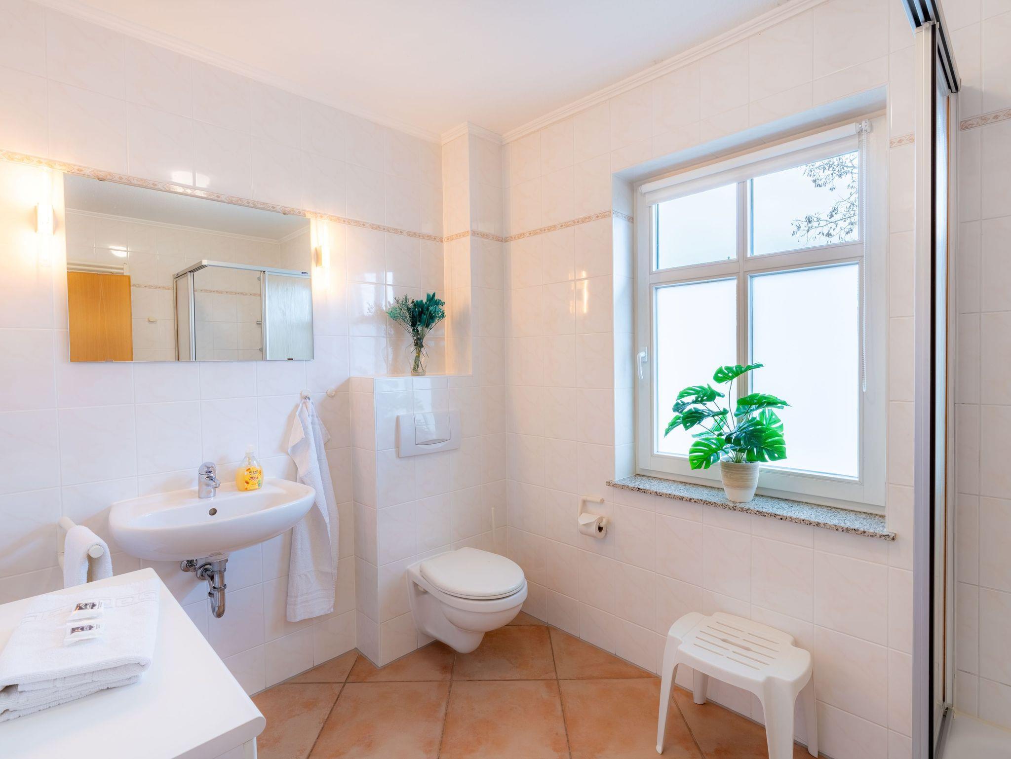 Die 53 qm große Maisonette-Ferienwohnung bietet Platz für max. 4 Personen. Die Wohnung verfügt über einen Wohnbereich und Küchenzeile, ein Badezimmer mit Dusche und WC und in der oberen Etage über ein Schlafzimmer mit einem Doppelbett und ein Schlafzimmer mit 2 Einzelbetten. Die Wohnung hat einen Balkon zur Gartenseite. Der Wohnbereich ist mit einer gemütlichen Sitzgruppe und einem Essplatz eingerichtet. Ebenso sind Kabel-TV und CD-Spieler mit Radio vorhanden.