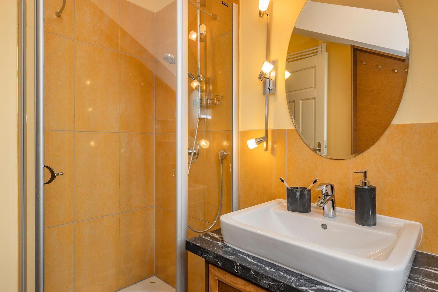 Das großzügige Schlafzimmer mit einem komfortablen Doppelbett verspricht erholsamen Schlaf. Verdunkelungsmöglichkeiten sorgen für ungestörte Nächte. Ein direkter Zugang vom Schlafzimmer zum Südwestbalkon lädt dazu ein, die sonnigen Stunden in vollen Zügen zu genießen. Das moderne Badezimmer mit ebenerdiger Dusche bietet zusätzlichen Komfort und Bequemlichkeit.