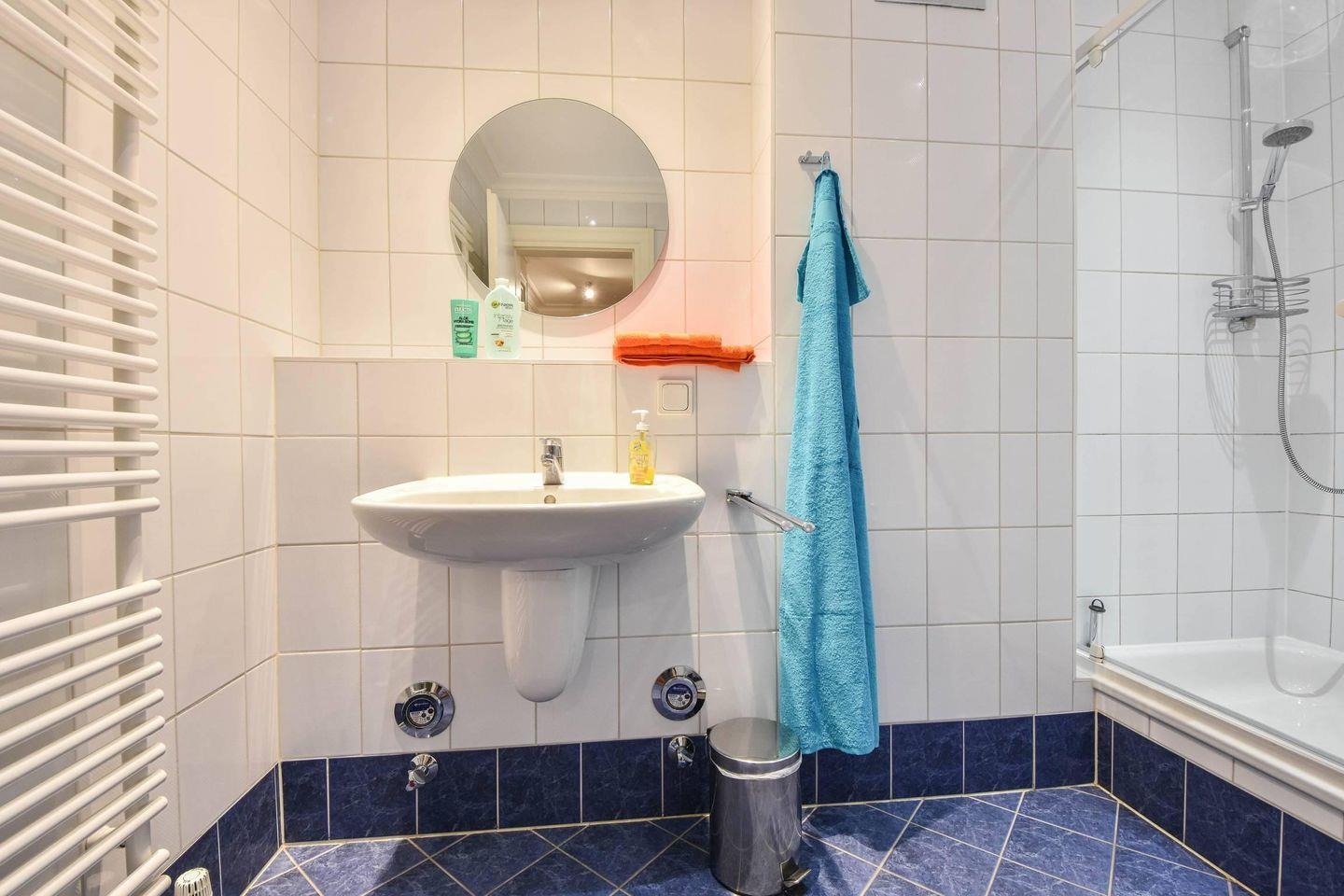 Das geschmackvoll gestaltete Bad bietet mit Dusche, Badewanne und Handtuchheizkörper vollen Komfort und ist sowohl funktional als auch stilvoll eingerichtet. Damit Sie sich vom ersten Moment an wohlfühlen können, sind alle Betten bereits bezogen, ausreichend Handtücher liegen für Sie bereit und eine Grundausstattung an wichtigen Utensilien ist vorhanden – ideal für einen sorgenfreien Start in den Urlaub. Ein Stellplatz direkt am Haus sowie kostenfreies WLAN machen das Angebot komplett. Villa Vineta 205 vereint historische Architektur mit modernem Komfort und ermöglicht Ihnen eine entspannte Auszeit mit Ostseeflair in bester Ahlbecker Lage.