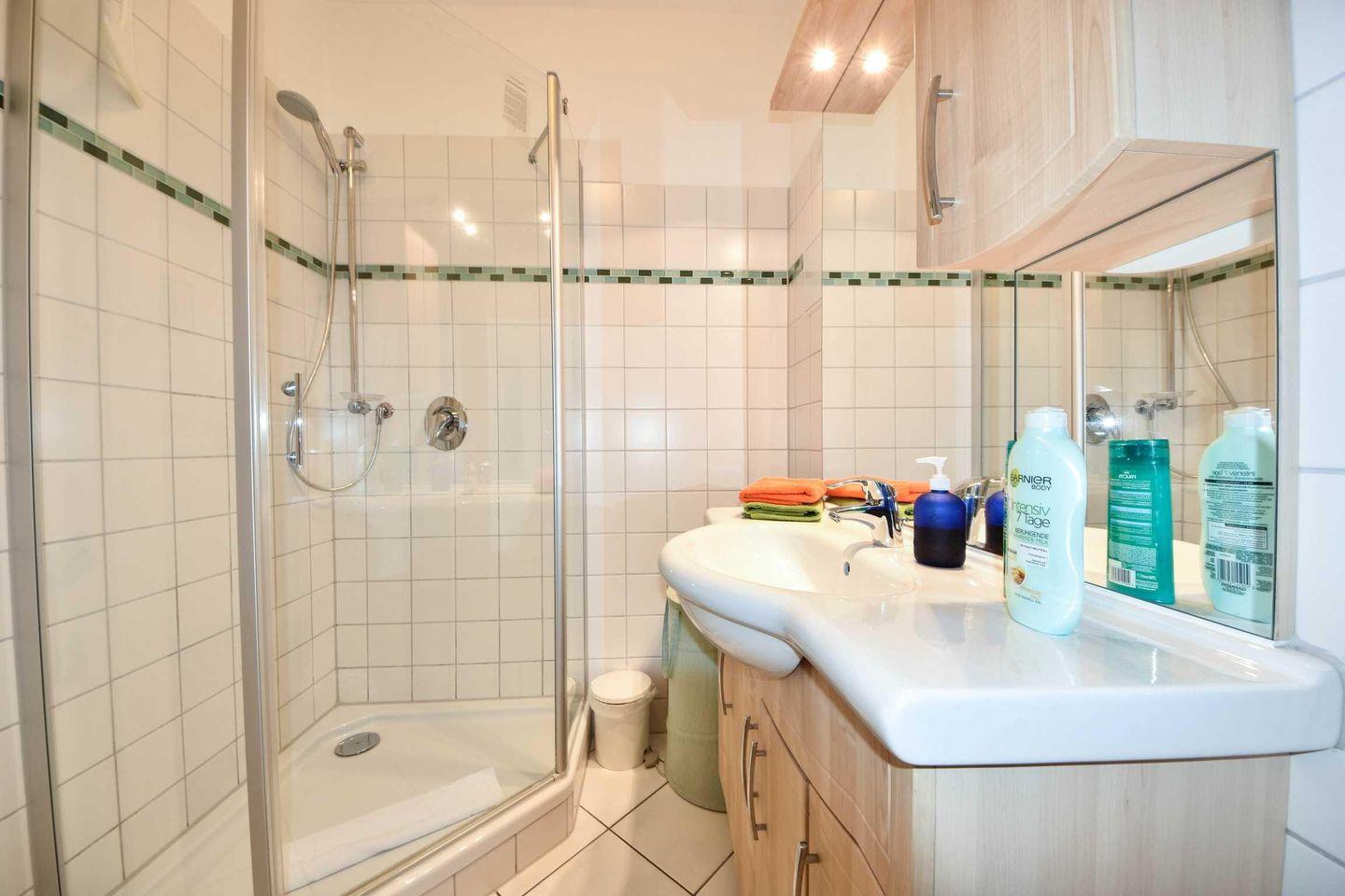 Das moderne Duschbad ist funktional eingerichtet und rundet das stimmige Gesamtbild dieser Ferienwohnung ab. Damit Sie sich vom ersten Moment an wohlfühlen, sind alle Betten bereits bezogen und ausreichend Handtücher liegen für Sie bereit. Zudem finden Sie eine Grundausstattung mit allen wichtigen Dingen für einen entspannten Start in den Urlaub vor.