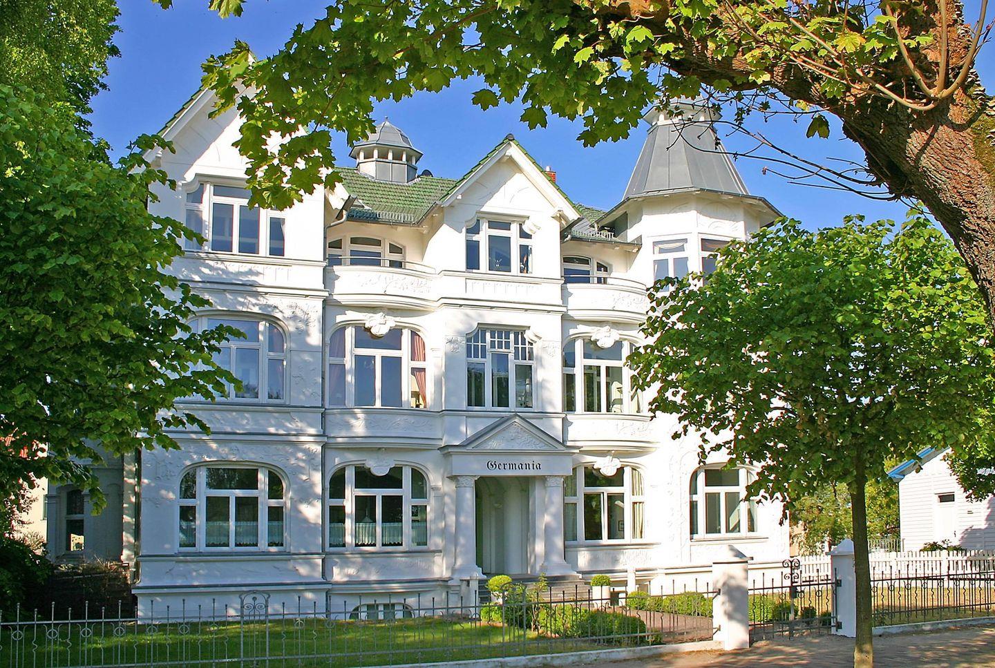 Die prachtvolle Villa Germania wurde im Stil der Gründerzeit um 1900 erbaut. Sie befindet sich direkt an der Strandpromenade im Seebad Ahlbeck und bietet so kurze Wege an den Strand und in das Ortszentrum. Der dreigeschossige Bau hat zwei Seiten- und ein Mittelrisalit, Geschoß getrennte Gesimse und aufgeputztes Blatt- und Rankwerk an der Fassade. Über eine Freitreppe führt der Weg zur Portalnische. Nach der Privatisierung und umfassender Rekonstruktion 1996 beherbergt die Villa Ferienappartements.