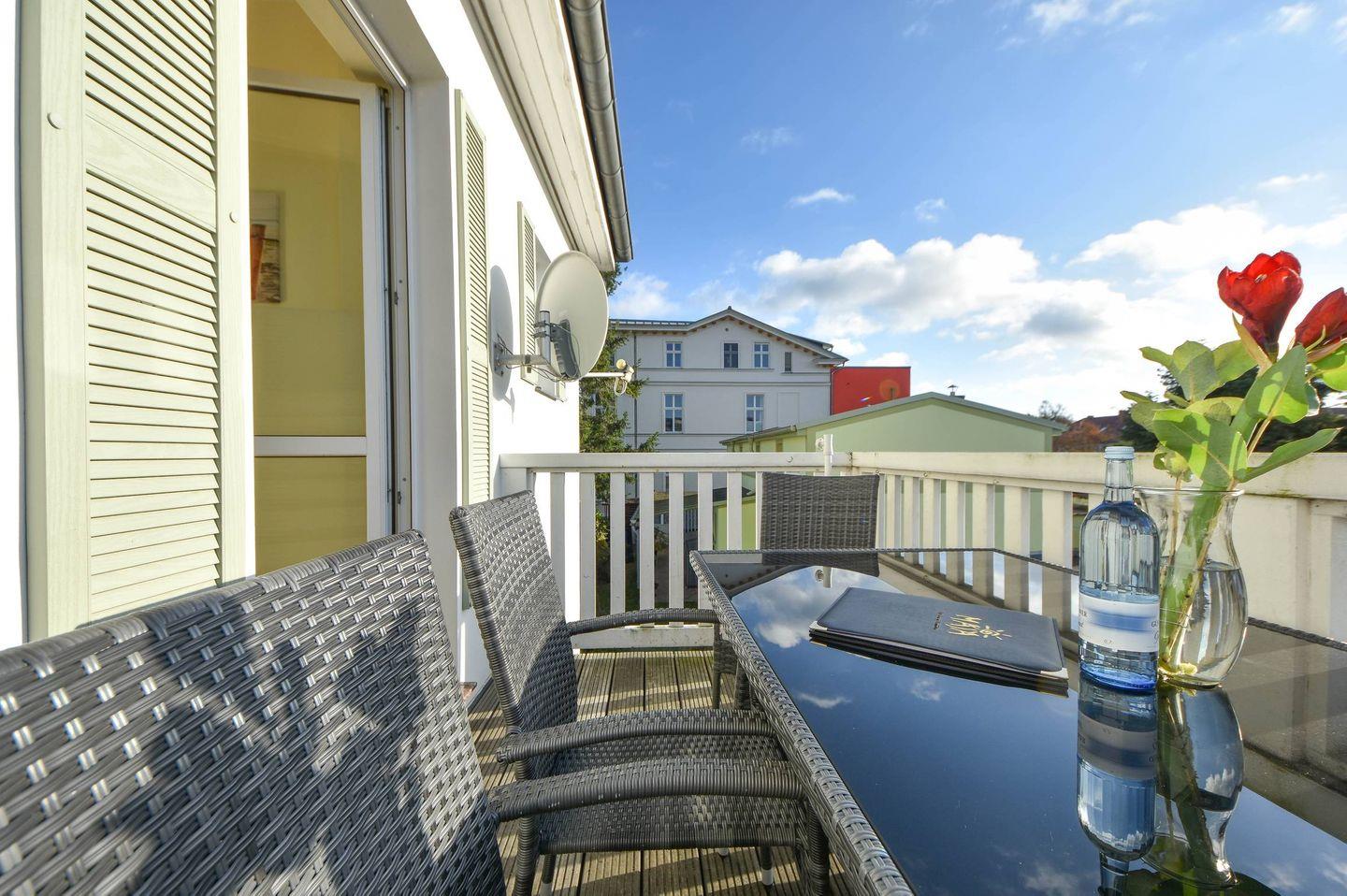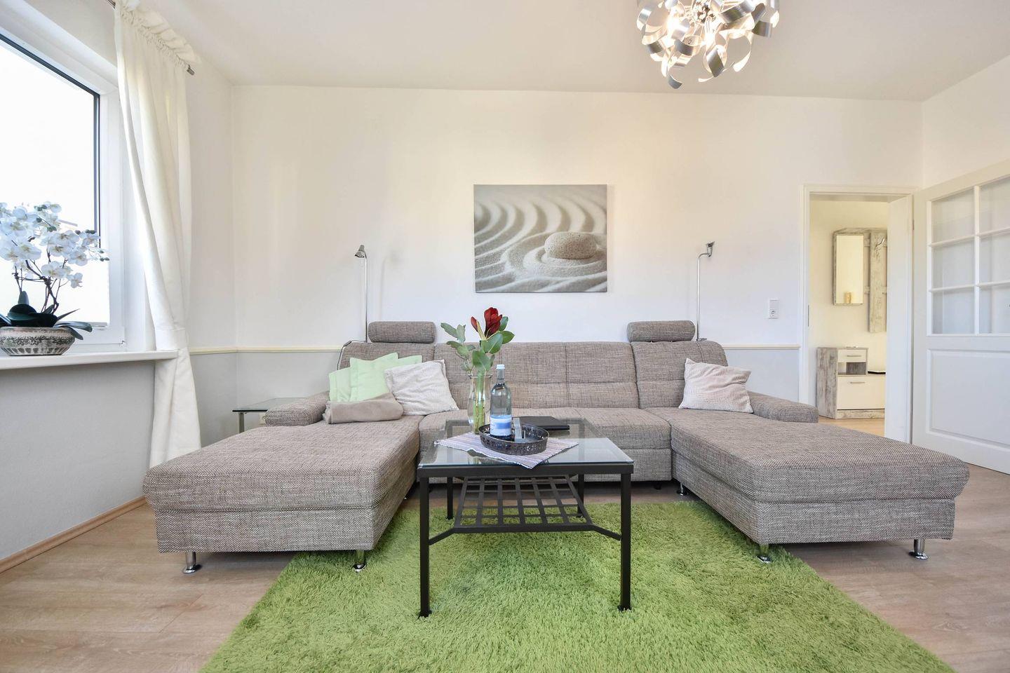 Die Ferienwohnung "Seestern" befindet sich in Ahlbeck, in hervorragender Ausgangslage um die Kaiserbäder zu erkunden. Im ersten Obergeschoss des Hauses Thalia erwartet Sie hier eine moderne und großzügig geschnittene Ferienwohnung mit zwei Schlafzimmern, einem großen Wohnzimmer sowie separater Küche und einem Badezimmer. Ein Balkon gehört zur Wohnung und ist über den Hausflur zu erreichen. Hier haben Sie eine schöne Sicht auf die umliegenden Gebäude und können sowohl morgens Ihr Frühstück einnehmen oder am Abend den Tag bei einem Glas Wein ausklingen lassen. Das Wohnzimmer ist mit einer gemütlichen Couch als Sitzgelegenheit ausgestattet. Es verfügt zusätzlich über einen großen TV und ein Radio mit CD-Funktion.