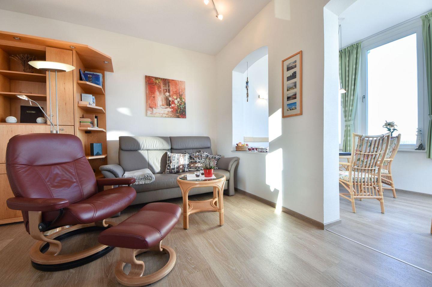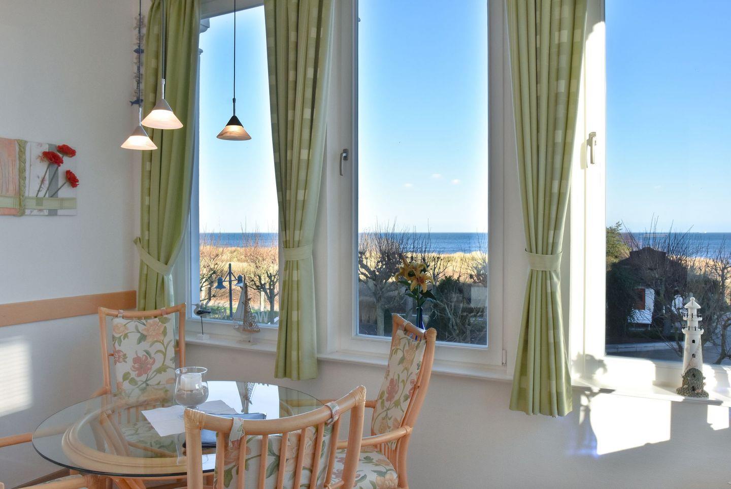 Ein besonderes Juwel direkt an der Promenade des Seebades Ahlbeck erwartet Sie! Diese Ferienwohnung bietet allen Komfort, den Sie sich im Urlaub wünschen und verfügt als besonderes Highlight über unverbauten, direkten Meerblick. Lassen Sie die Seele baumeln und genießen Sie auf den bequemen Korbstühlen in der Loggia sowohl das Rauschen der Wellen, als auch ganzjährig die einmalige Aussicht: über die Düne blicken Sie bis zur historischen Seebrücke des Kaiserbades.