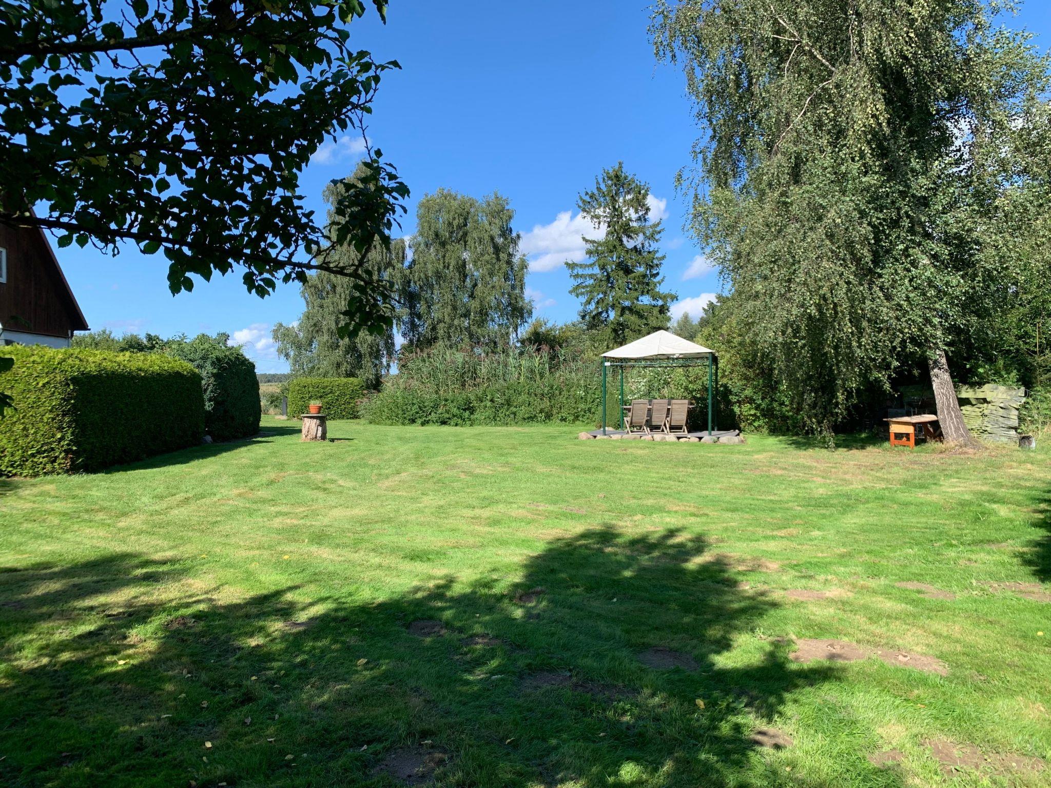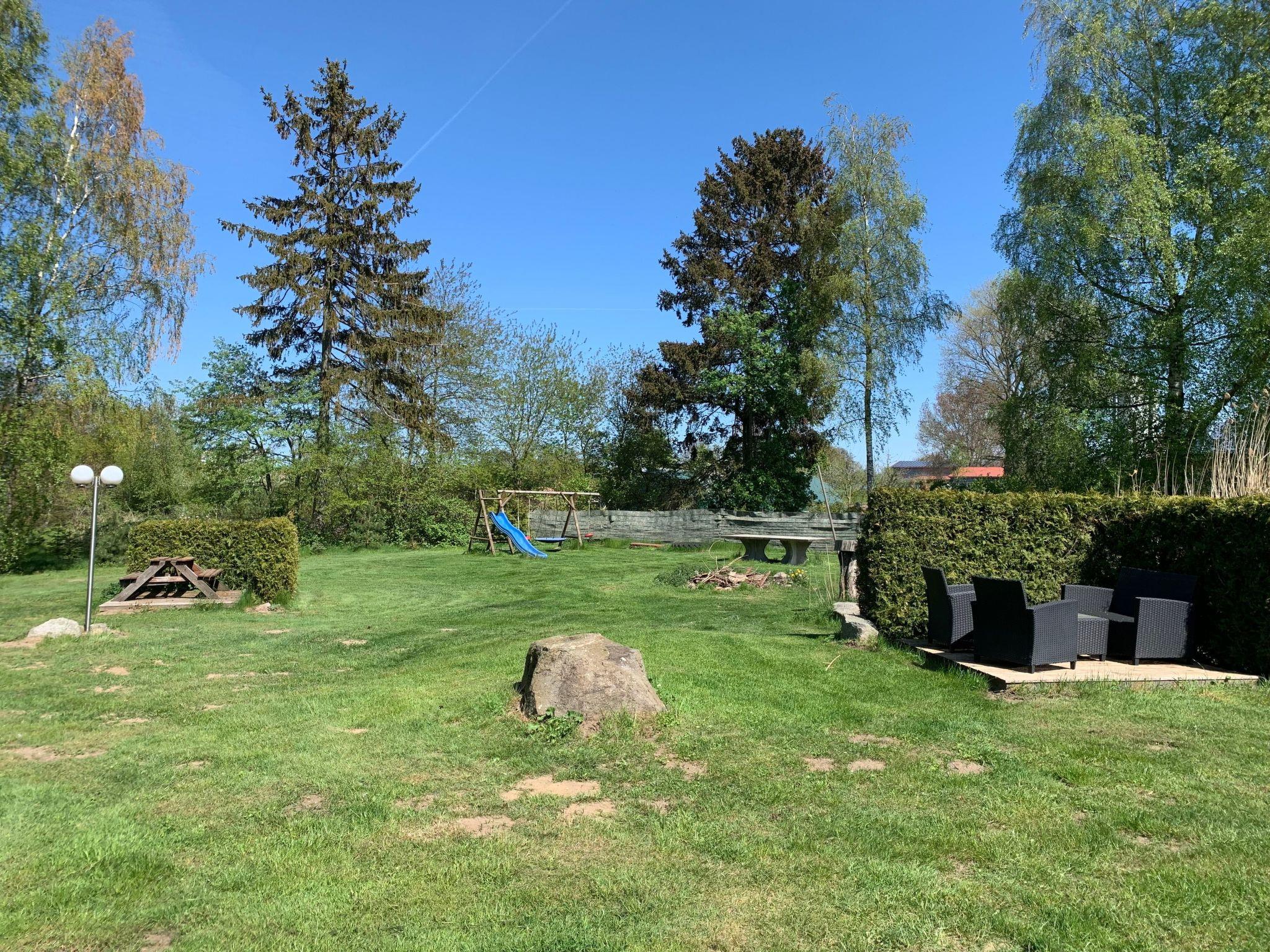There is a generous garden for leisurely breakfasts outdoors with family or friends, enjoying the morning sun. The large lawn invites you to enjoy volleyball or frisbee. Children can run around to their heart’s content. You can sunbathe undisturbed and relax in the fresh air in privacy. The large site has a grill area, campfire area, climbing frame, seating groups etc. Parking spaces are available.