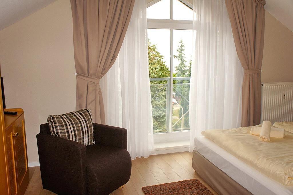 Die Dachgeschoss-Ferienwohnung befindet sich auf der Südost-Seite der Apartmentanlage, auf der 3. Etage des Hauses 1/3. Eingang. In unmittelbarer Nähe zur Anlage liegt der Ostseestrand - eingeschränkt vom Schlafzimmer des Apartments aus sichtbar.