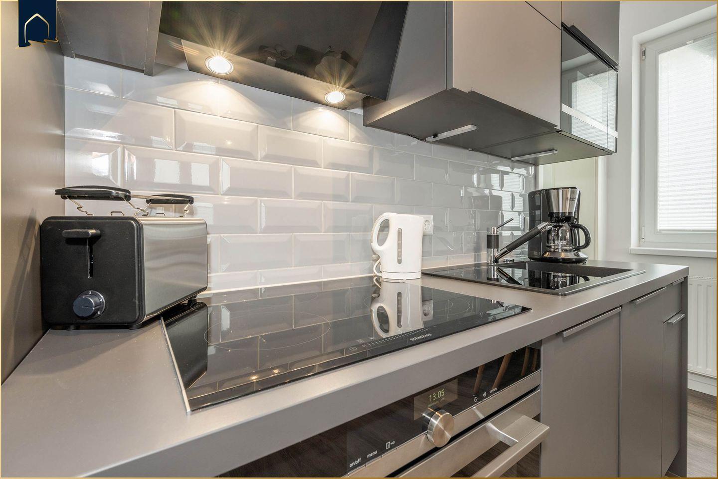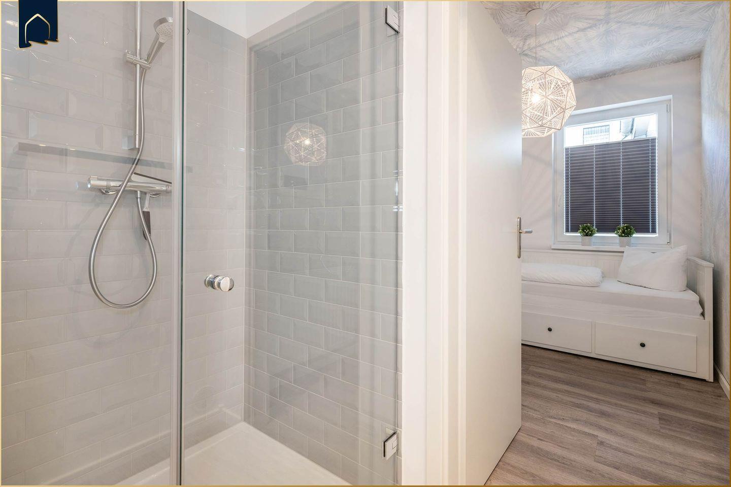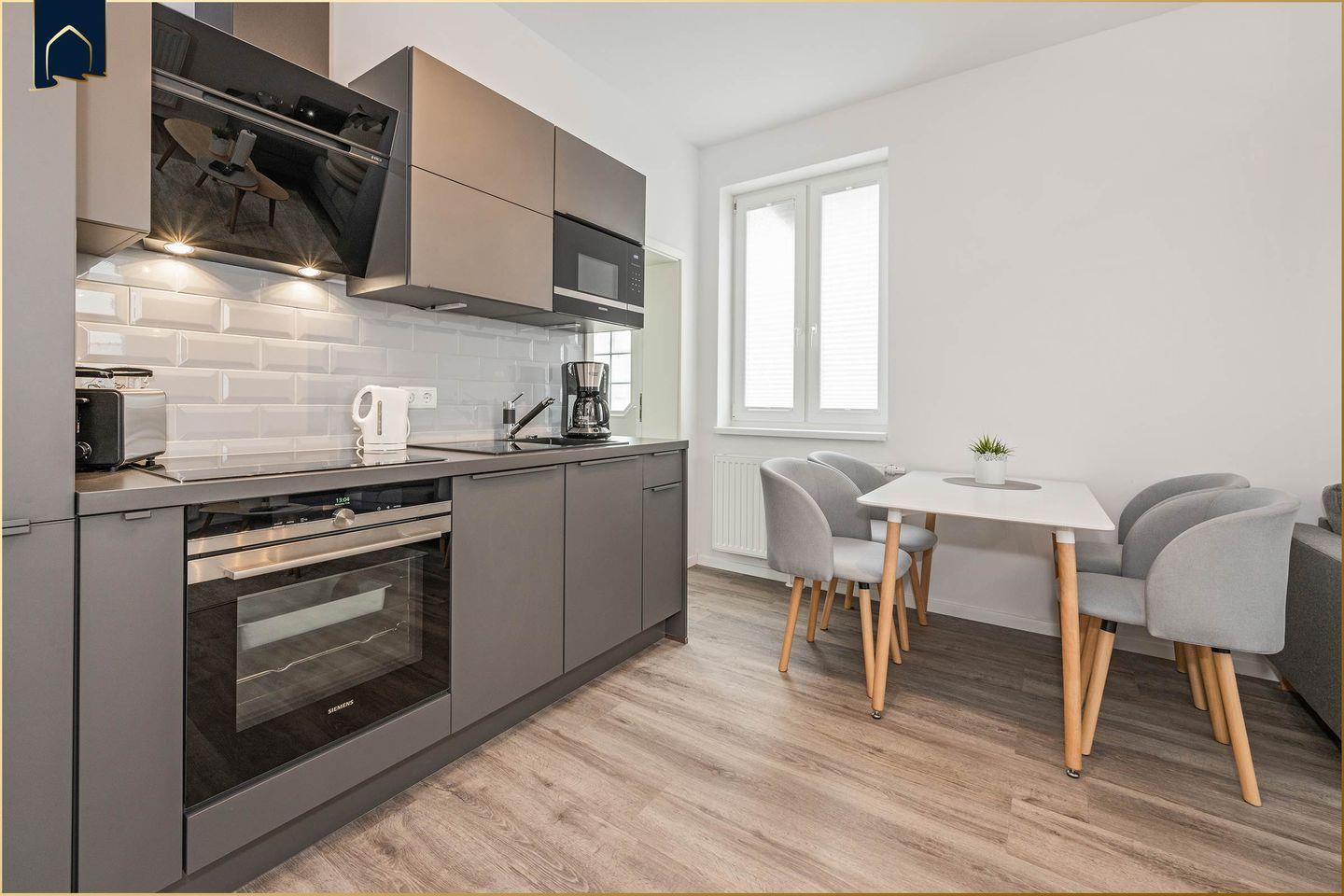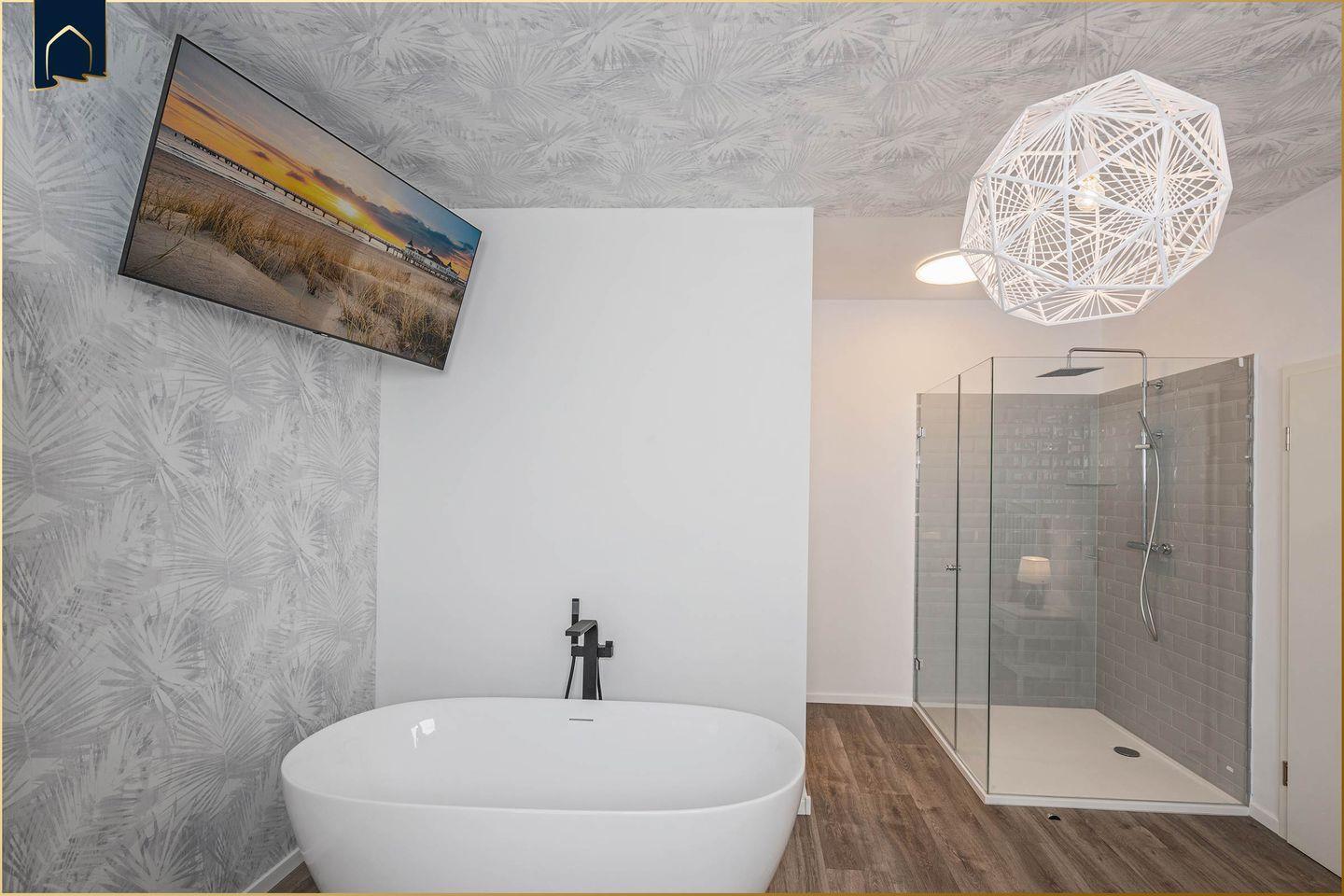 Die Ausstattung lässt keine Wünsche offen: Eine voll ausgestattete Küche mit Herd, Backofen, Mikrowelle, Kühlschrank, Gefrierfach und Spülmaschine ermöglicht eine bequeme Selbstverpflegung. Am Esstisch oder in der gemütlichen Sofaecke genießen Sie entspannte Abende – mit kostenfreiem WLAN und zwei Flachbild-TVs ist auch für Unterhaltung gesorgt. Das Badezimmer verfügt über Dusche, WC, Waschbecken und Haartrockner – zusätzlich steht ein Ganzkörperspiegel bereit. Alle Fenster sind mit Sichtschutz versehen, was für eine angenehme Privatsphäre sorgt.