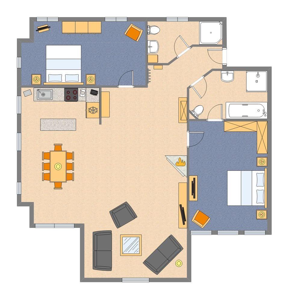 Gleich zwei vollwertige Bäder stehen den Gästen zur Verfügung: eins verfügt über Dusche, Wanne und WC - das zweite über Dusche und WC. Ein Handtuchhalter-Heizkörper sowie eine Fußbodenerwärmung sind zusätzliche erwähnenswerte Ausstattungsdetails. Besonders praktisch: der flache Duscheinstieg in einem der Bäder.