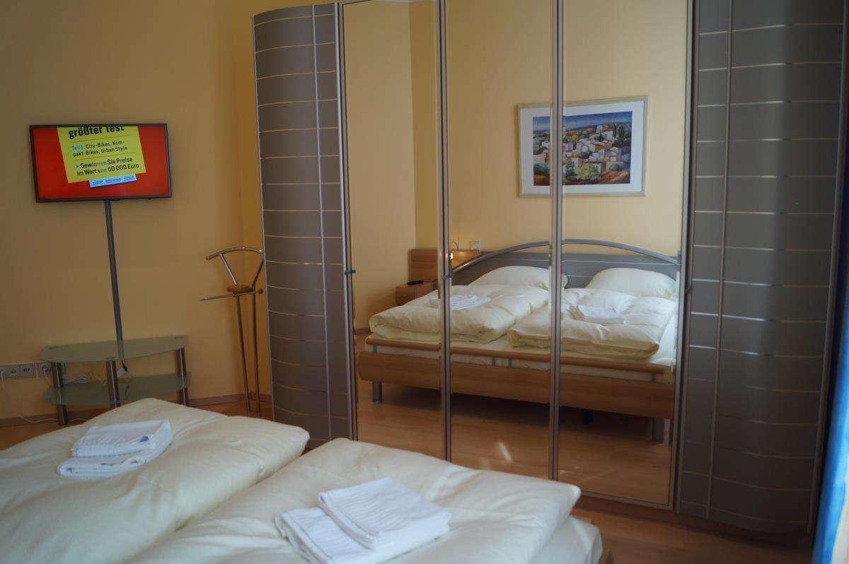 Die beiden Schlafzimmer verfügen jeweils über ein Doppelbett mit hochwertigen Matratzen sowie einem Kleiderschrank. In einem der Schlafzimmer steht zusätzlich ein Schreibtisch - praktisch für den Fall, dass im Urlaub dann doch einmal gearbeitet werden muss. Stattdessen gibt es im zweiten Schlafraum einen Flachbild-TV........ für welches Zimmer entscheiden Sie sich? Sie haben die Wahl!