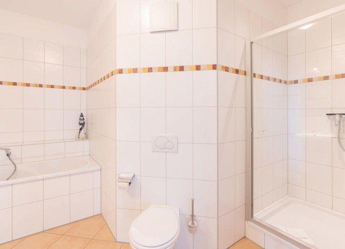 Zwei schöne Bäder stehen den Gästen zur Verfügung: eines davon ist mit Wanne, Dusche und WC ausgestattet, das andere verfügt über Dusche und WC. Einen Fön gibt es in beiden Bädern.