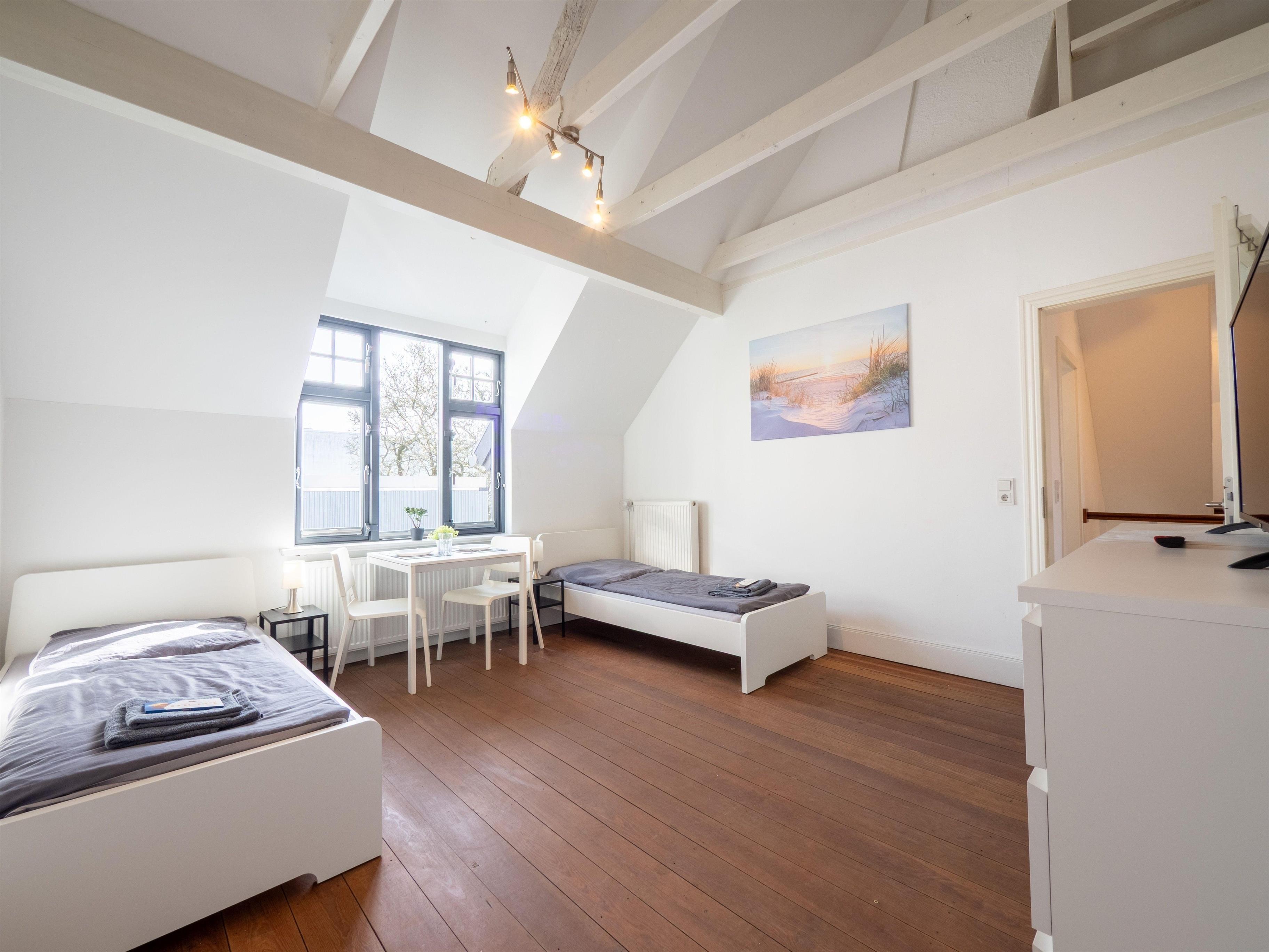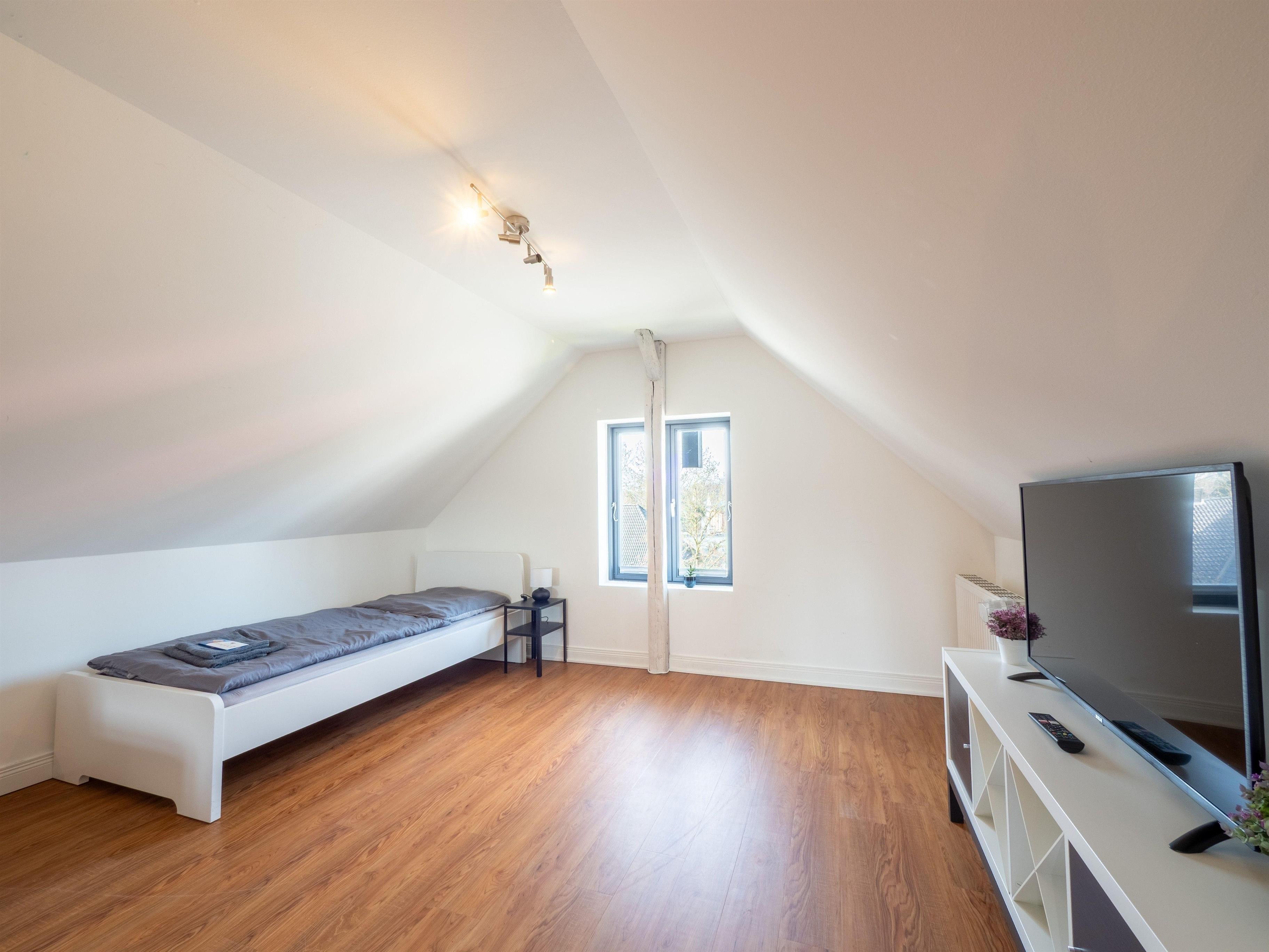 - Schlafzimmer 4 (im Dachgeschoss): 1 Doppelbett, 1 Einzelbett, gemütliche Fernsehecke mit TV