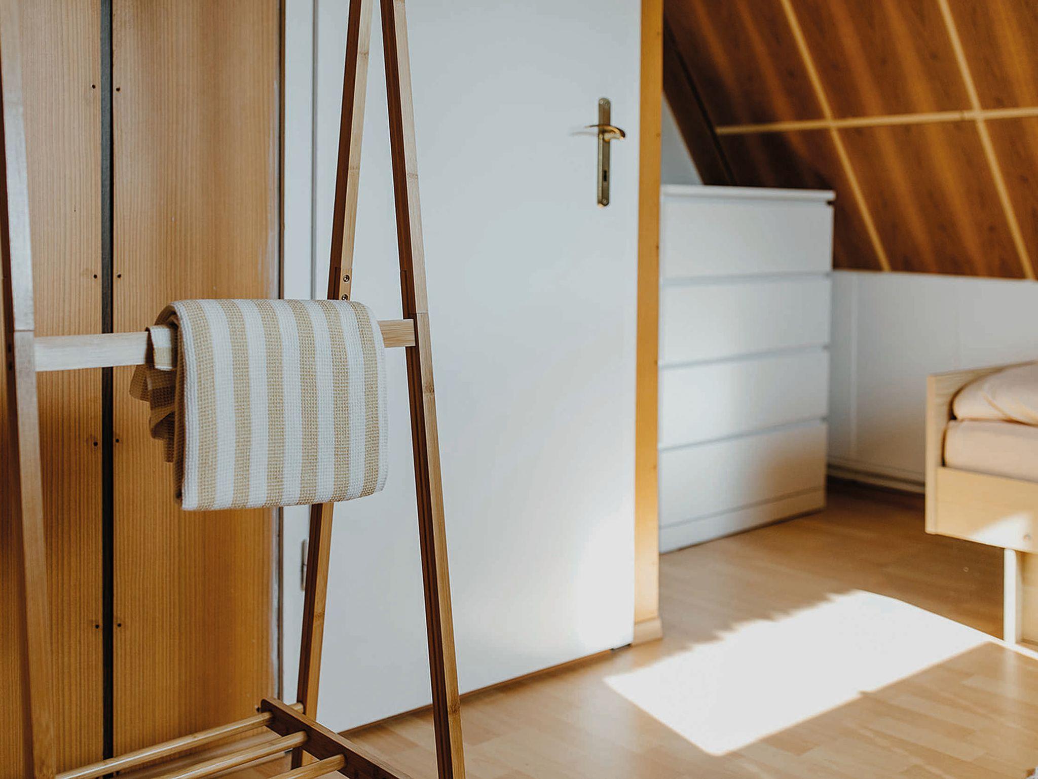 Das Obergeschoss ist über eine steile Treppe zu erreichen, daher ist das Ferienhaus für Kinder unter 6 Jahren und Urlauber mit Handicap leider nicht geeignet.