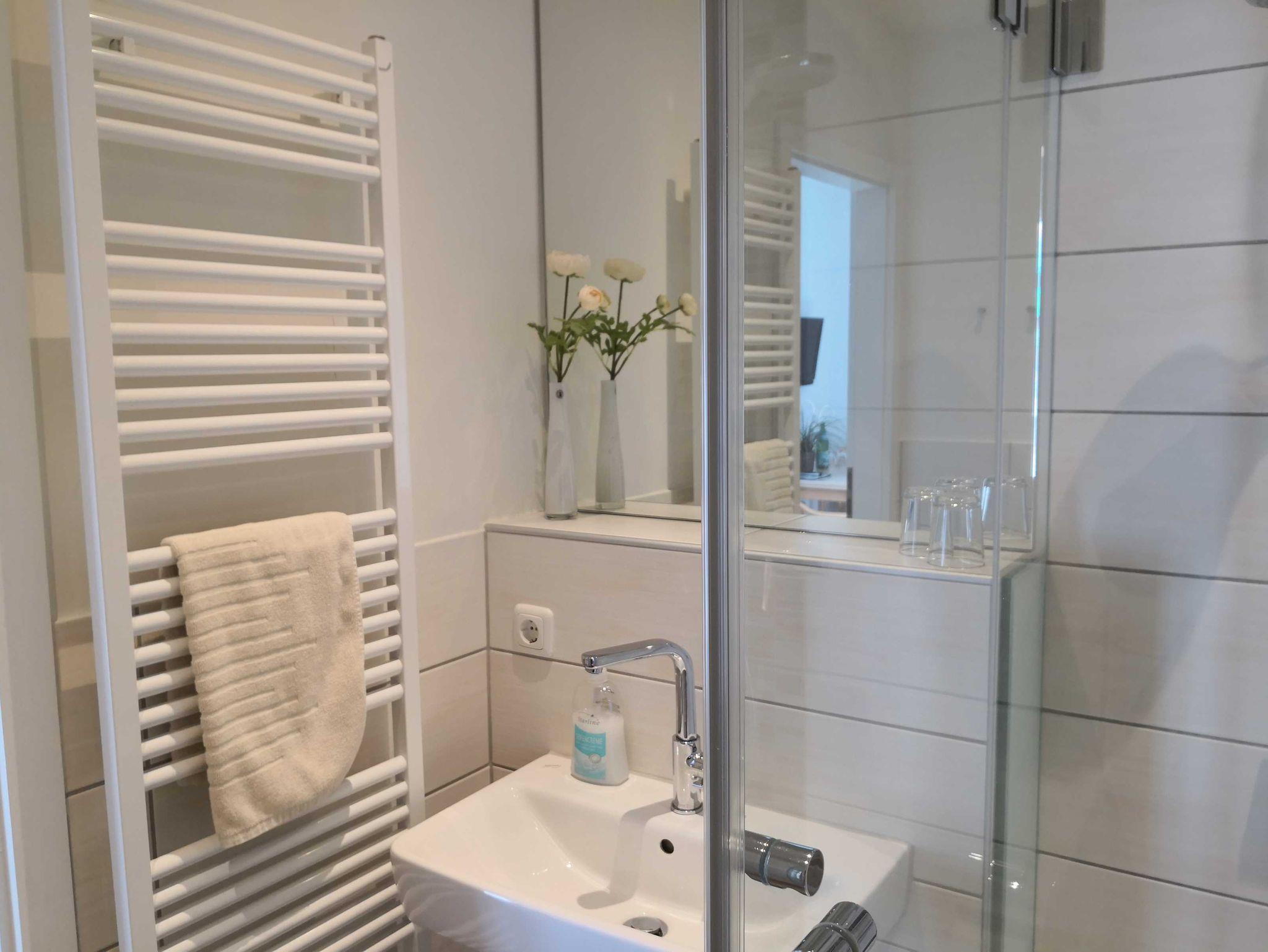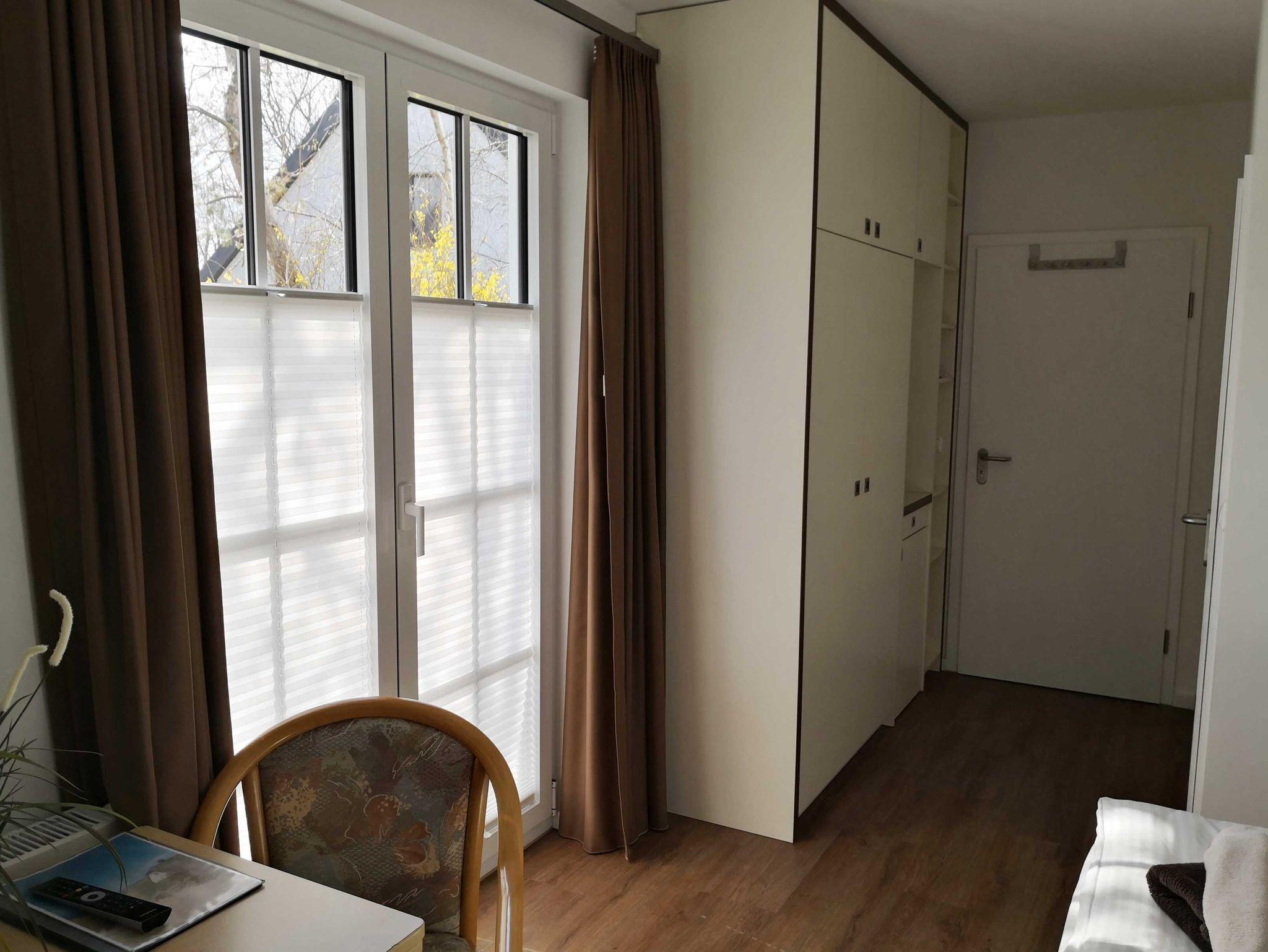 Im Erdgeschoss des Gästehauses befinden sich drei Doppelzimmer, die auch zur Einzelnutzung buchbar sind.
