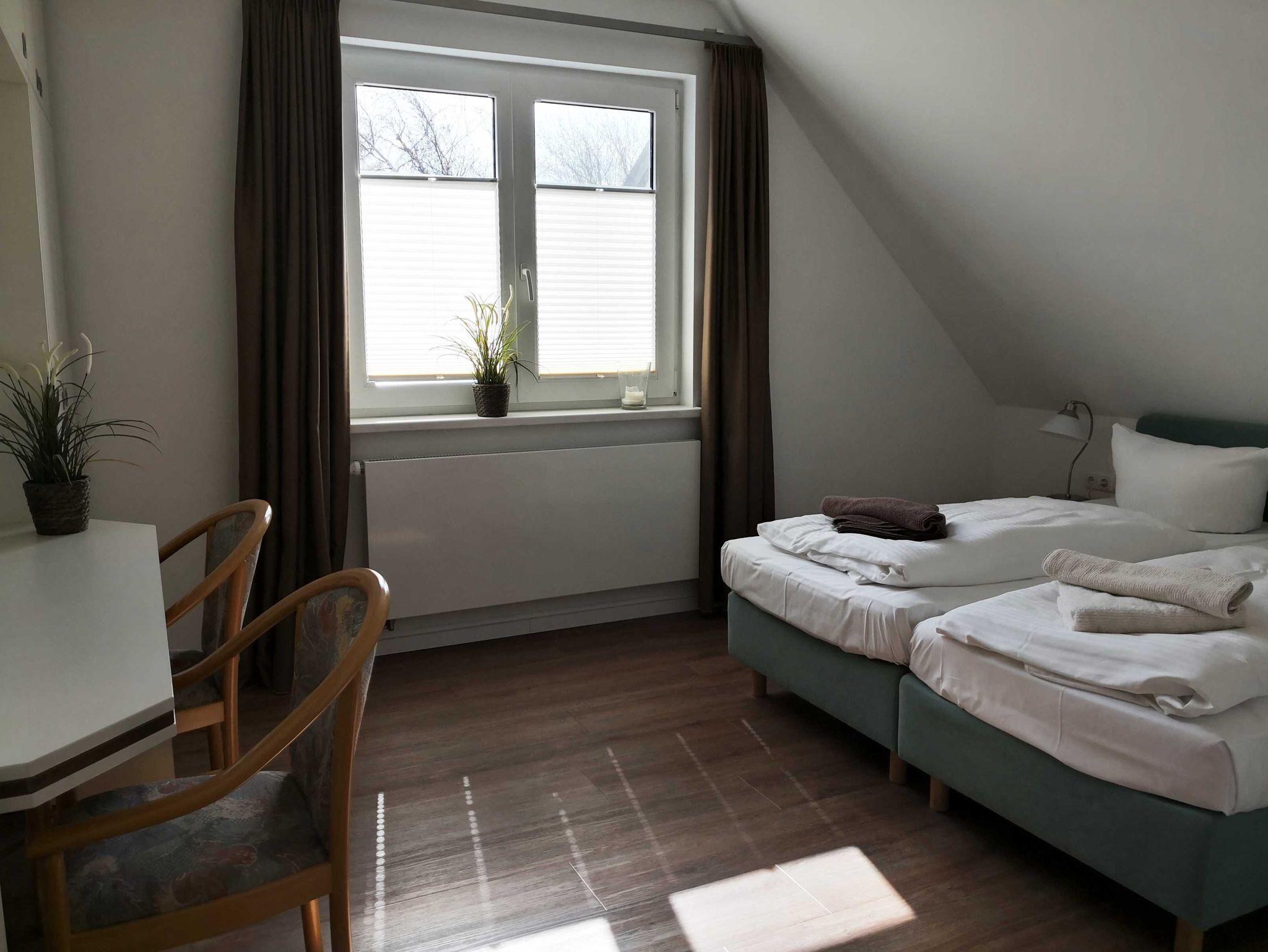 Im Gästehaus der Strandhalle befinden sich 10 modern eingerichtete Zweibettzimmer und ein Gruppenraum zur Nutzung von Gruppenreisenden.