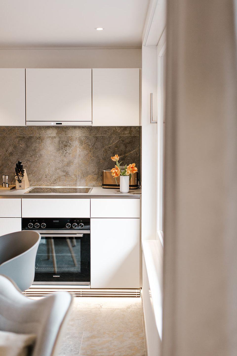 In direkter Nachbarschaft zum Kunstmuseum Ahrenshoop bietet das elegante Apartment GrasZart im Haupthaus der Anlage eine exzellente Ausstattung und Urlaubsfeeling auf hohem Niveau. Über einen separaten Eingangsbereich betreten die Gäste den hellen Wohnraum mit einer offenen Wohnküche und einem gemütlichen Sitzbereich. Der moderne Smarthome-TV präsentiert sich bei Bedarf im Ambiente-Mode in ein reizvolles Wandbild mit wechselnden Motiven.