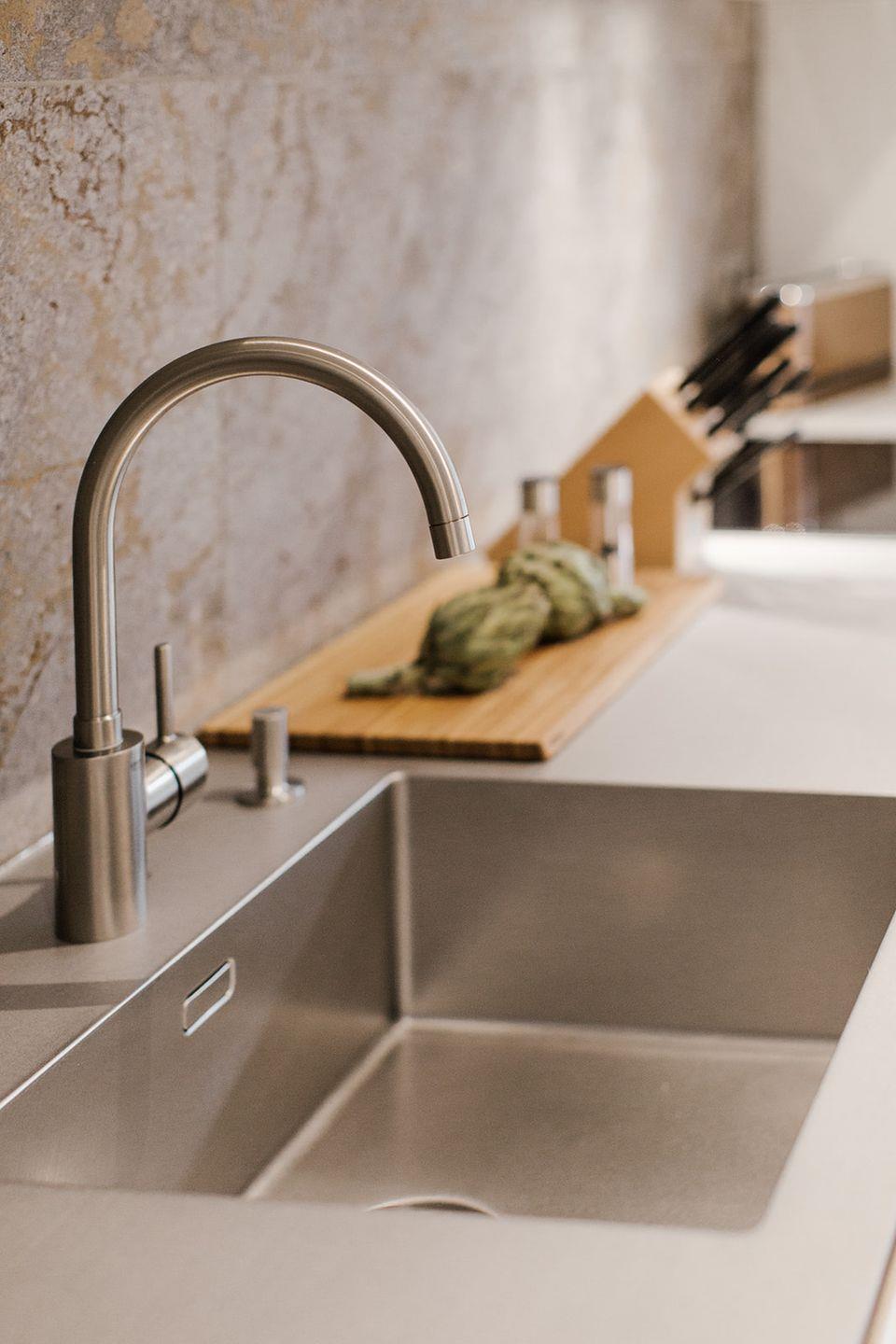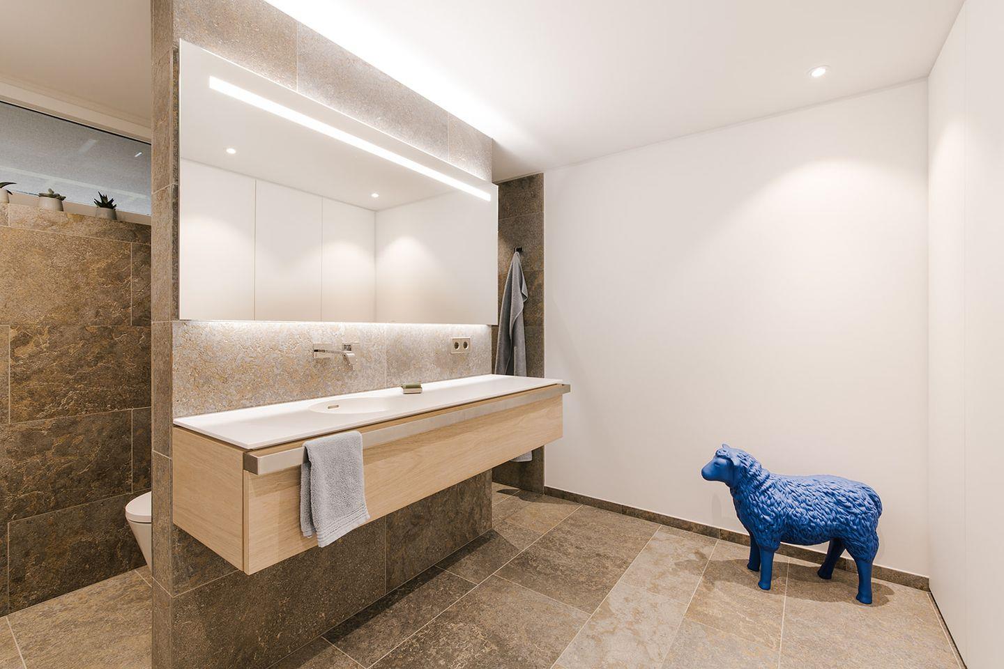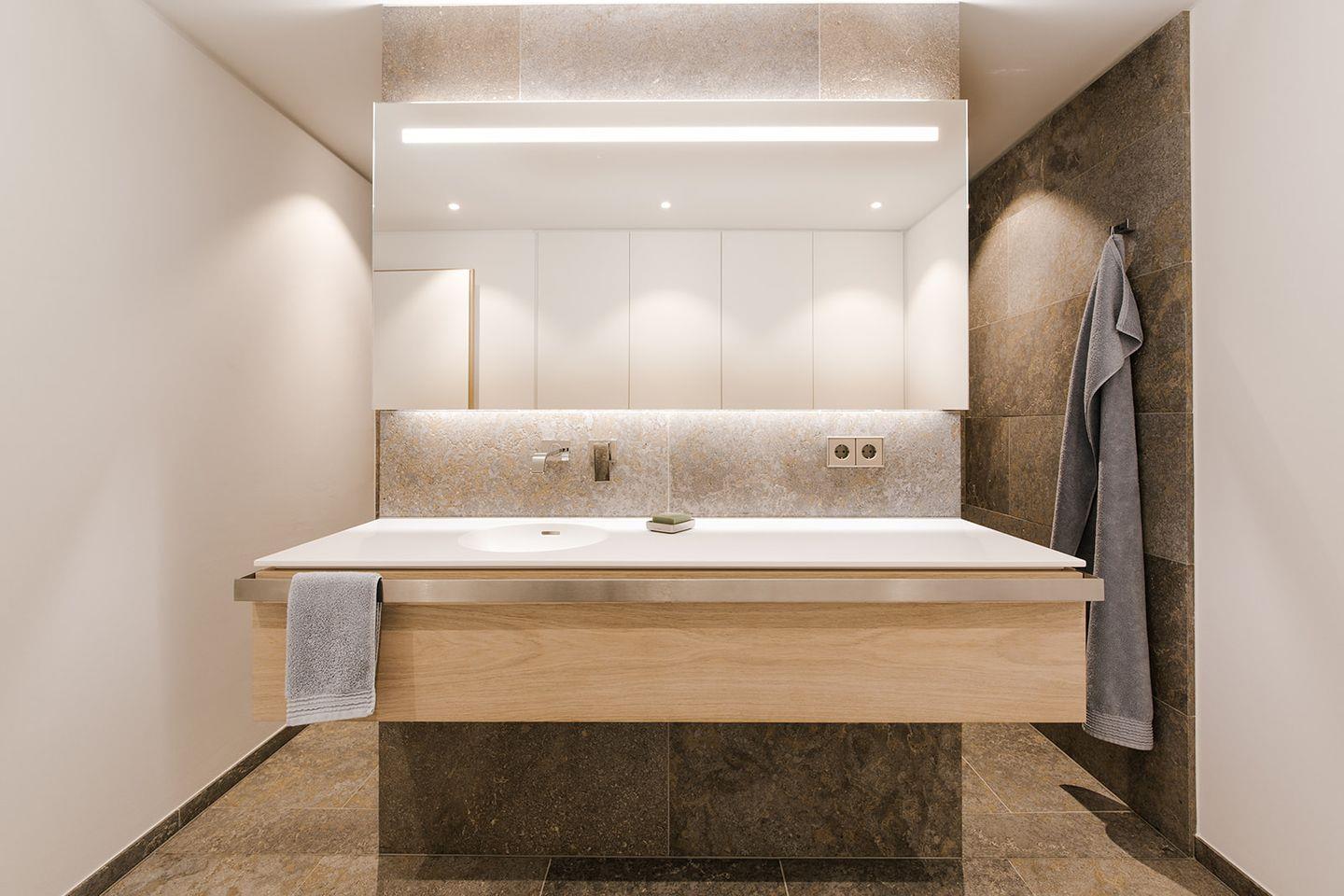 Ein elegantes Badezimmer mit ebenerdiger großzügiger Dusche und Waschtischen aus dem Hause Hasenkopf ist ein weiteres Highlight in dem Apartment in der Künstlerkolonie Ahrenshoop.