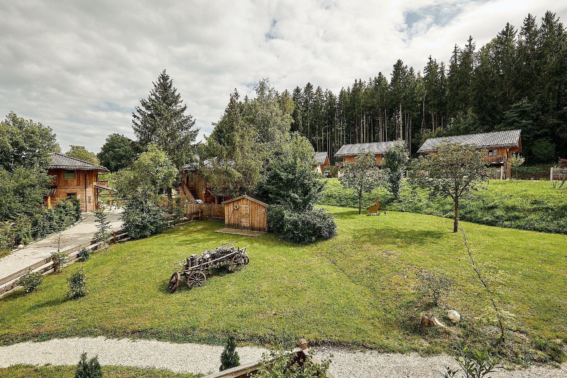 Von den Chalets genießen Sie einen herrlichen Ausblick auf die Bergwelt und auf den kleinen Bayern-Chalet-See.