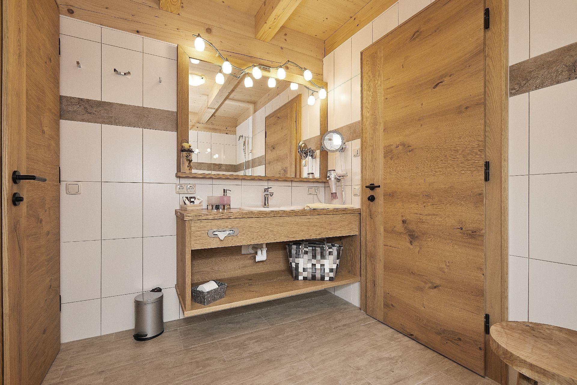 Bei unseren beliebten Ruperti-Chalets mit 65qm Wohnfläche befinden sich zwei Chalets in einem Haus, eines im Erdgeschoß, eines im Obergeschoß.