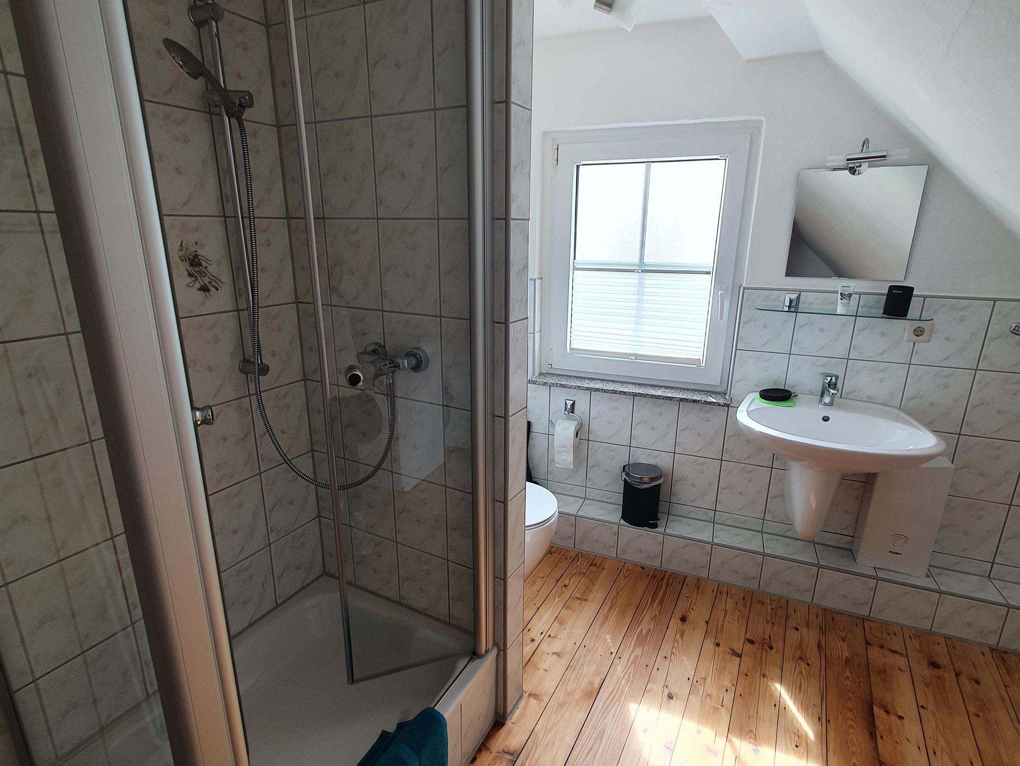 Das großzügige Badezimmer ist mit Dusche & WC ausgestattet. Föhn und Waschmaschine sind dort ebenfalls vorzufinden.