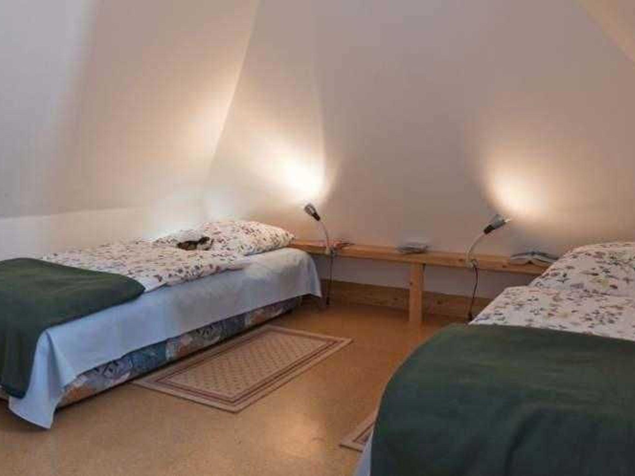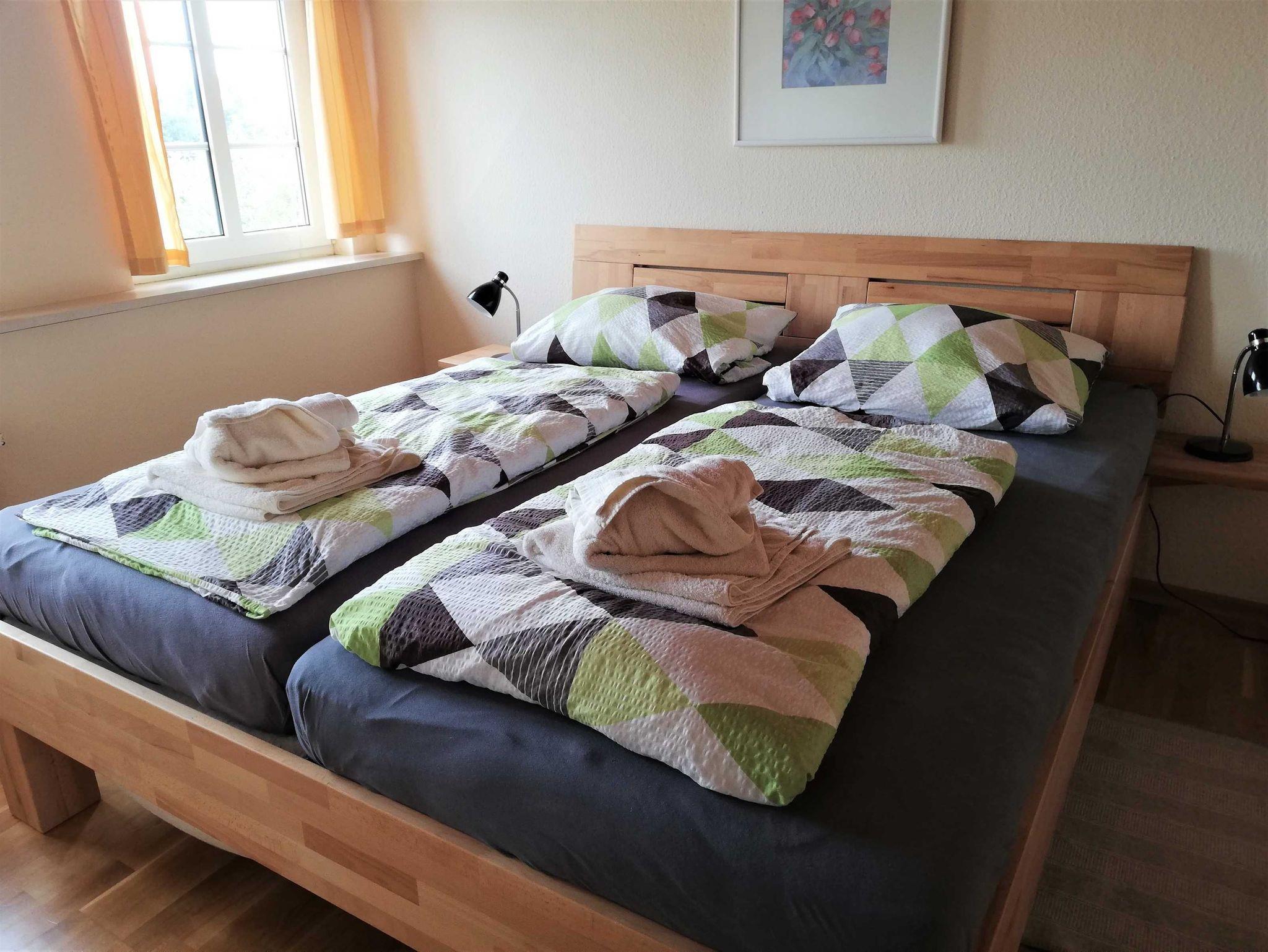 3 Schlafräume davon 1 Schlafraum mit Doppeltbett und 1 Schlafraum im Dachgeschoss mit 2 Einzelbetten, 1 (Kinder-)Schlafraum mit Einzelbett, von hieraus gelangt man in das Dachgeschoss. 1 großzügiger Wohnraum mit Esstisch, 1 separate Küche, 1 Badezimmer mit Dusche im Obergeschoss und ein renoviertes Bad mit Dusche im Dachgeschoss.