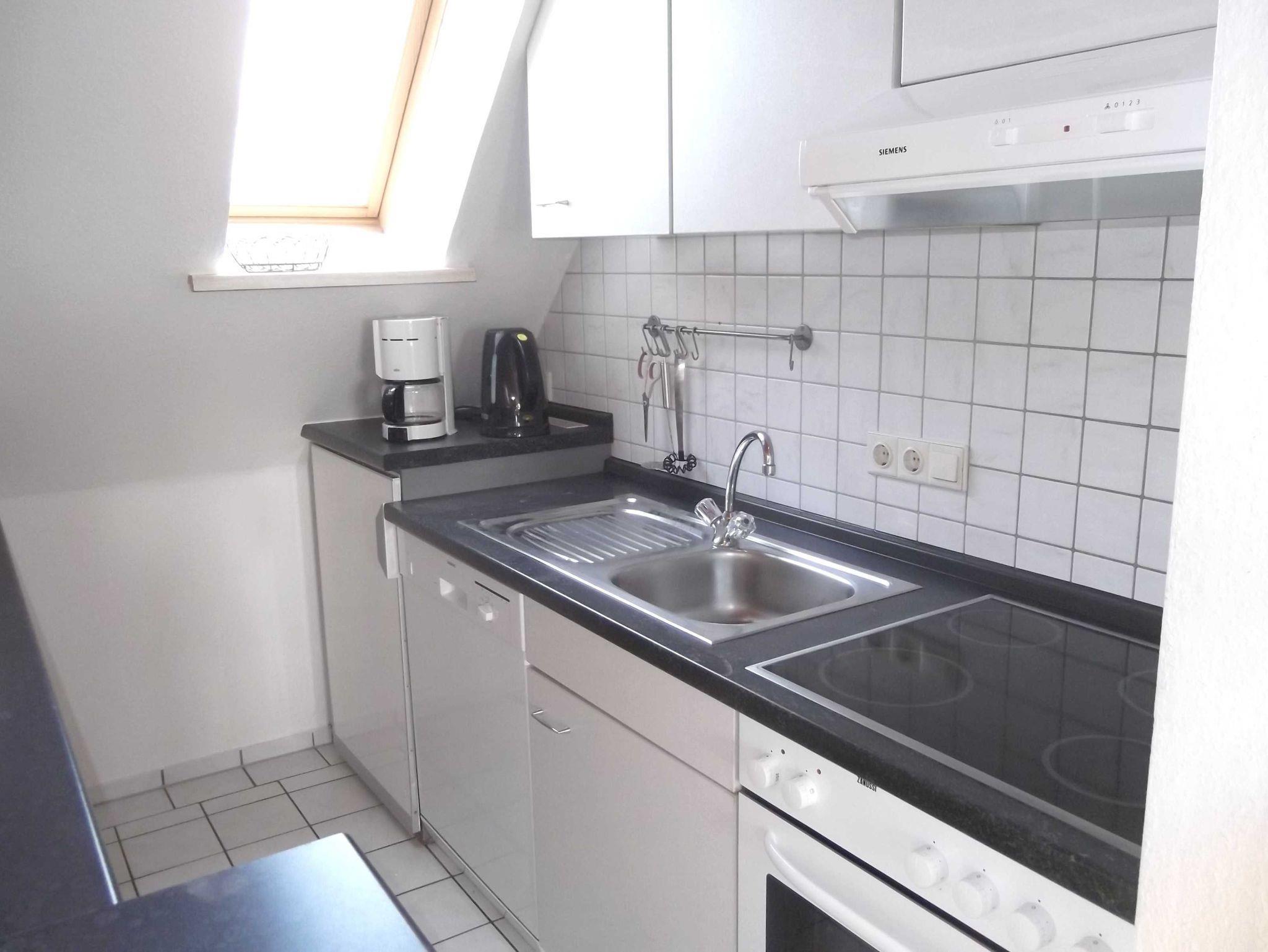 Die Küchenzeile ist mit Geschirrspülmaschine, Backofen und Mikrowelle ausgestattet.