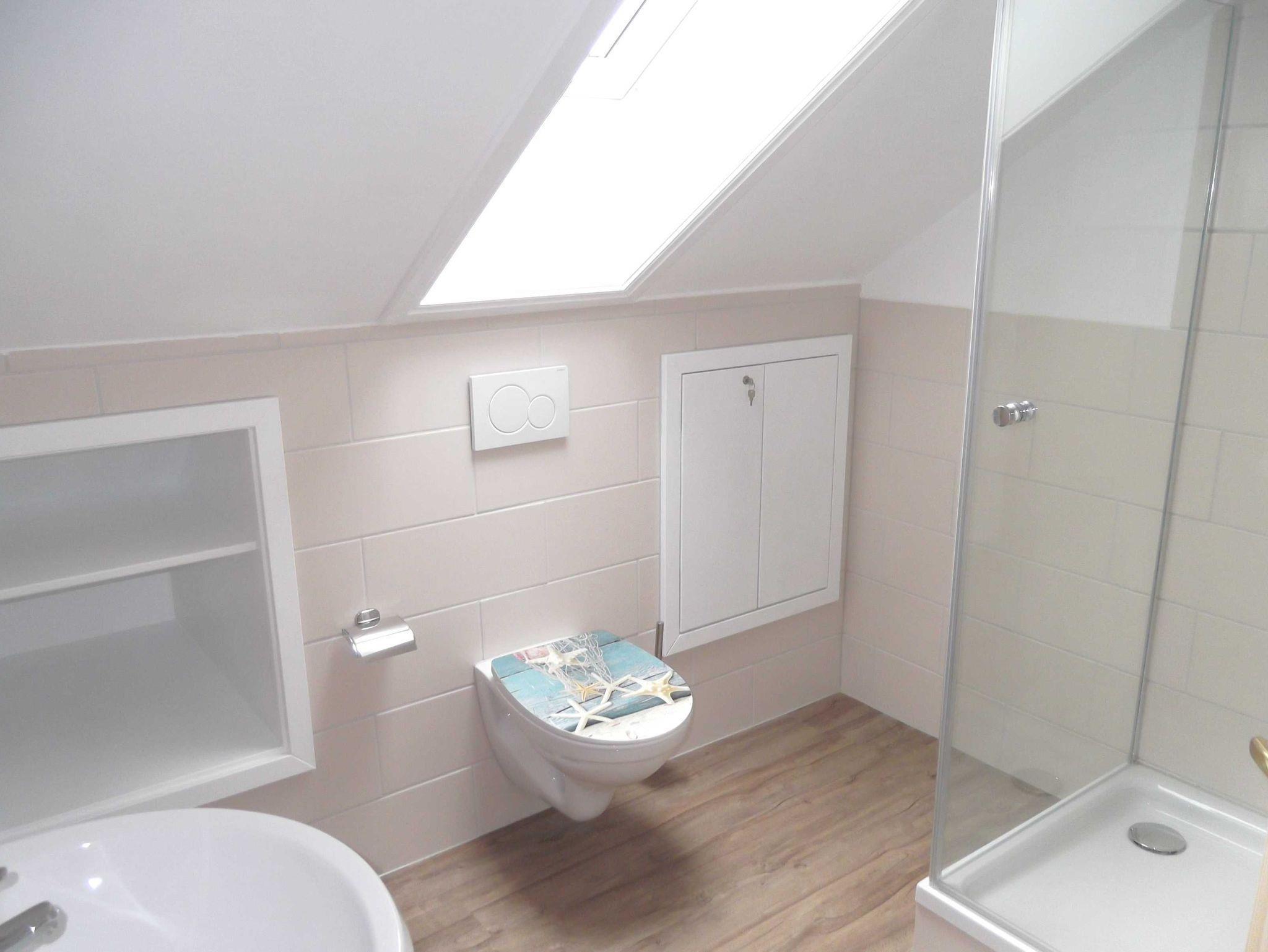 Im Dachgeschoß befindet sich ein zweites Badezimmer mit Dusche.