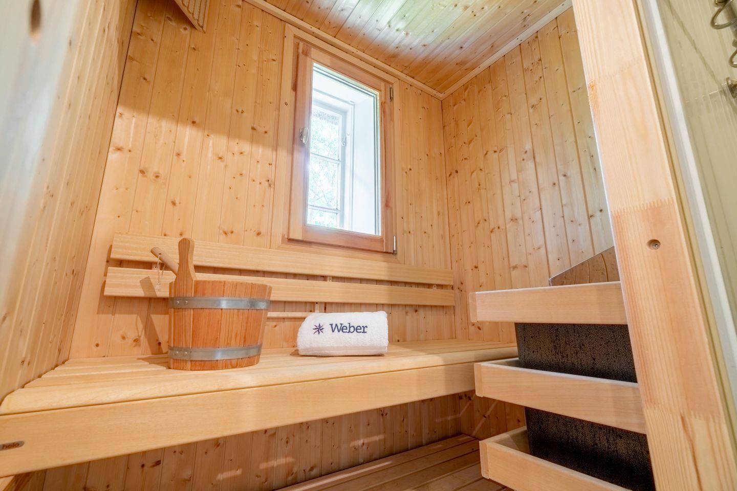 Ruhig gelegenes, exklusives Ferienhaus mit Kamin, Sauna und großzügigem 2.000 m² Garten mit altem Baumbestand.