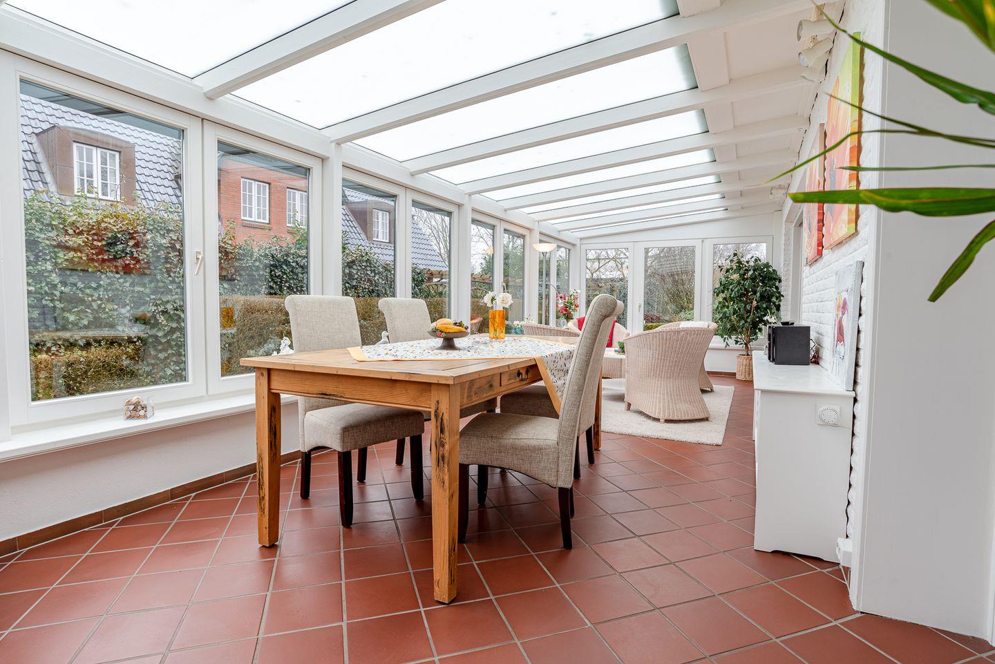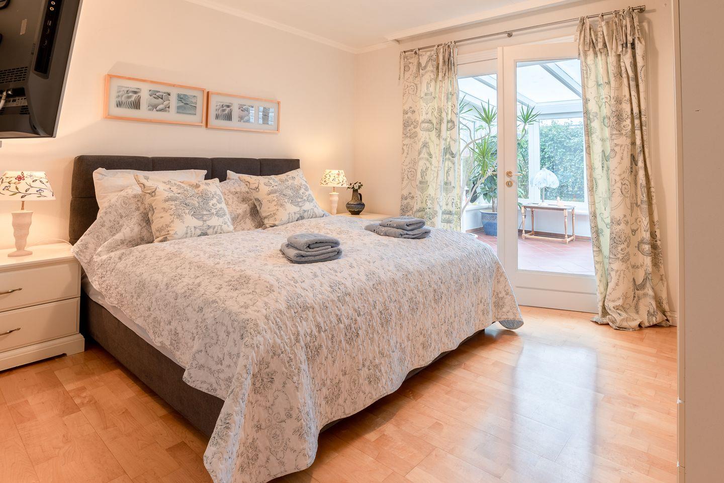 Die Ferienwohnung ist im Erdgeschoss gelegen und verfügt über einen großzügigen Wohn- und Essbereich mit separater Küche, zwei Schlafzimmer, einen Wintergarten, ein Duschbad und ein Gäste-WC, sowie einen gemeinschaftlich genutzter Hauswirtschaftsraum mit Wachmaschine und Trockner. Die Schlafzimmer sind mit einem Doppelbett bzw. zwei Einzelbetten ausgestattet. Über das Doppelbettzimmer und den Wohnbereich gelangen Sie in den Wintergarten und von dort aus direkt auf die eigene Terrasse und in den Garten.