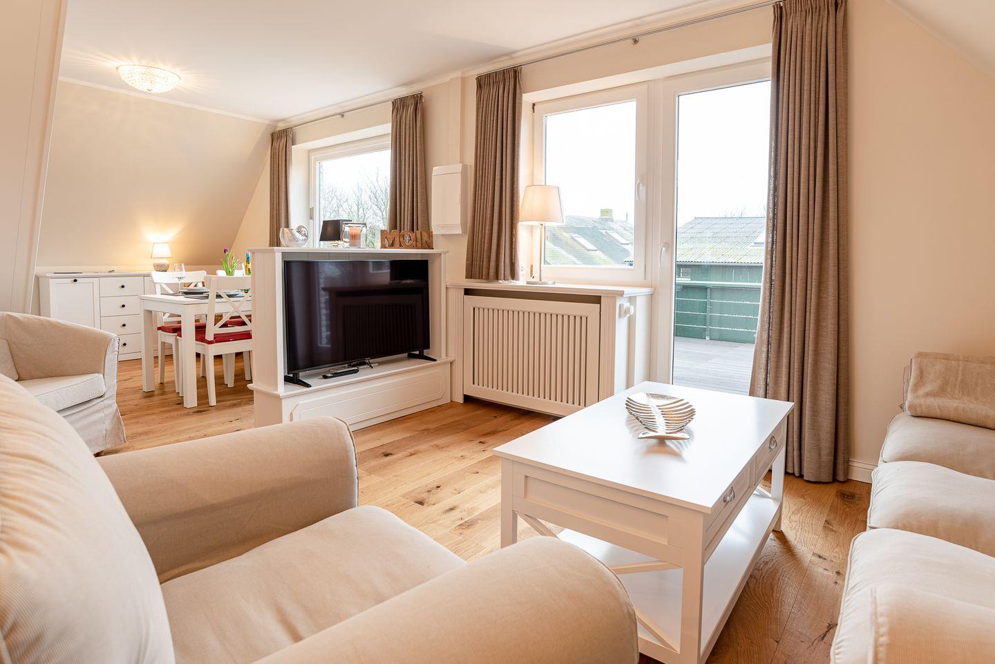 Die Obergeschosswohnung im White House verfügt über 4 Schlafzimmer und 2 Bäder und bietet somit komfortabel Platz für bis zu 4 Personen zuzüglich einer Kleinkinderaufbettung.