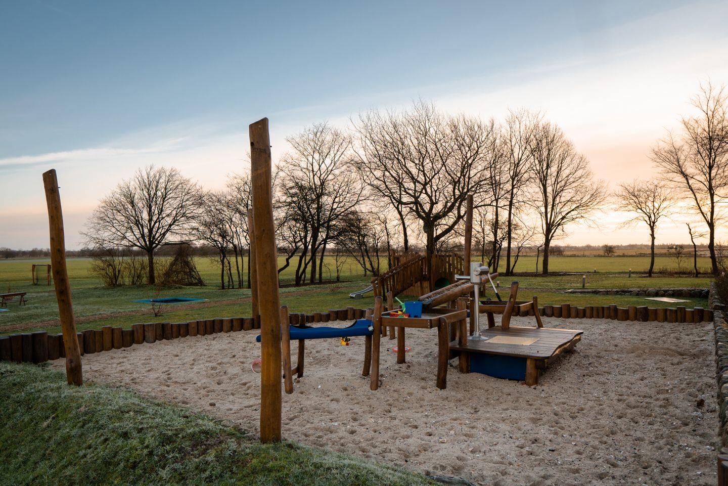 Der groß angelegte Spielplatz auf dem Grundstück ist eine Wohlfühloase für Ihre Kinder - von Seilbahn und Schaukel über ein Basketballfeld bis Trampolin gibt es viele Möglichkeiten zum Austoben. Der Spielplatz steht ausschließlich den Gästen der Ferienanlage Landliebe zur Verfügung. Bei schlechtem Wetter erheitern Tischtennis und Kicker sowie eine "Ecke" zum Spielen und Toben in der Spielscheune die Gemüter. In einem vom restlichen Garten abgetrennten Bereich lädt die Fass-Sauna mit Ruheraum und Außendusche zum Relaxen in Strand-Ambiente ein - Erholung pur! Der große Parkplatz mit E-Auto-Ladestation auf dem Grundstück oder der kostenfreie Shuttle vom Hafen zum Hotel (mit Voranmeldung) runden das Angebot ab.