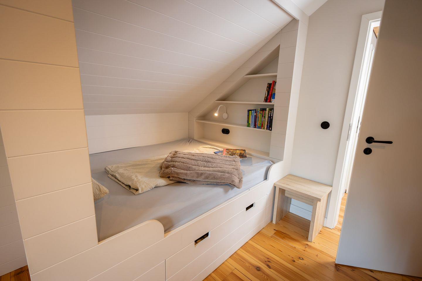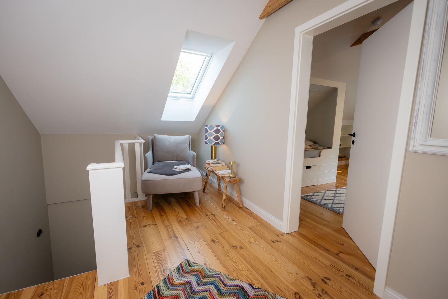 Exklusiver Ferienhausteil mit eigener Sauna und Küche, gemeinschaftlich genutztem großen Spielplatz und Fass-Sauna.