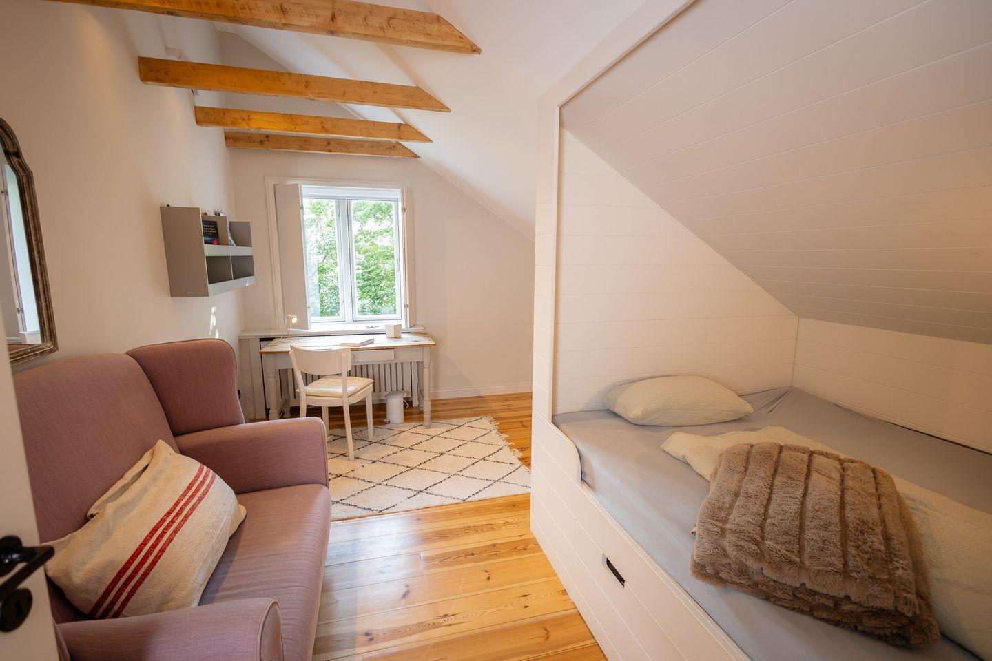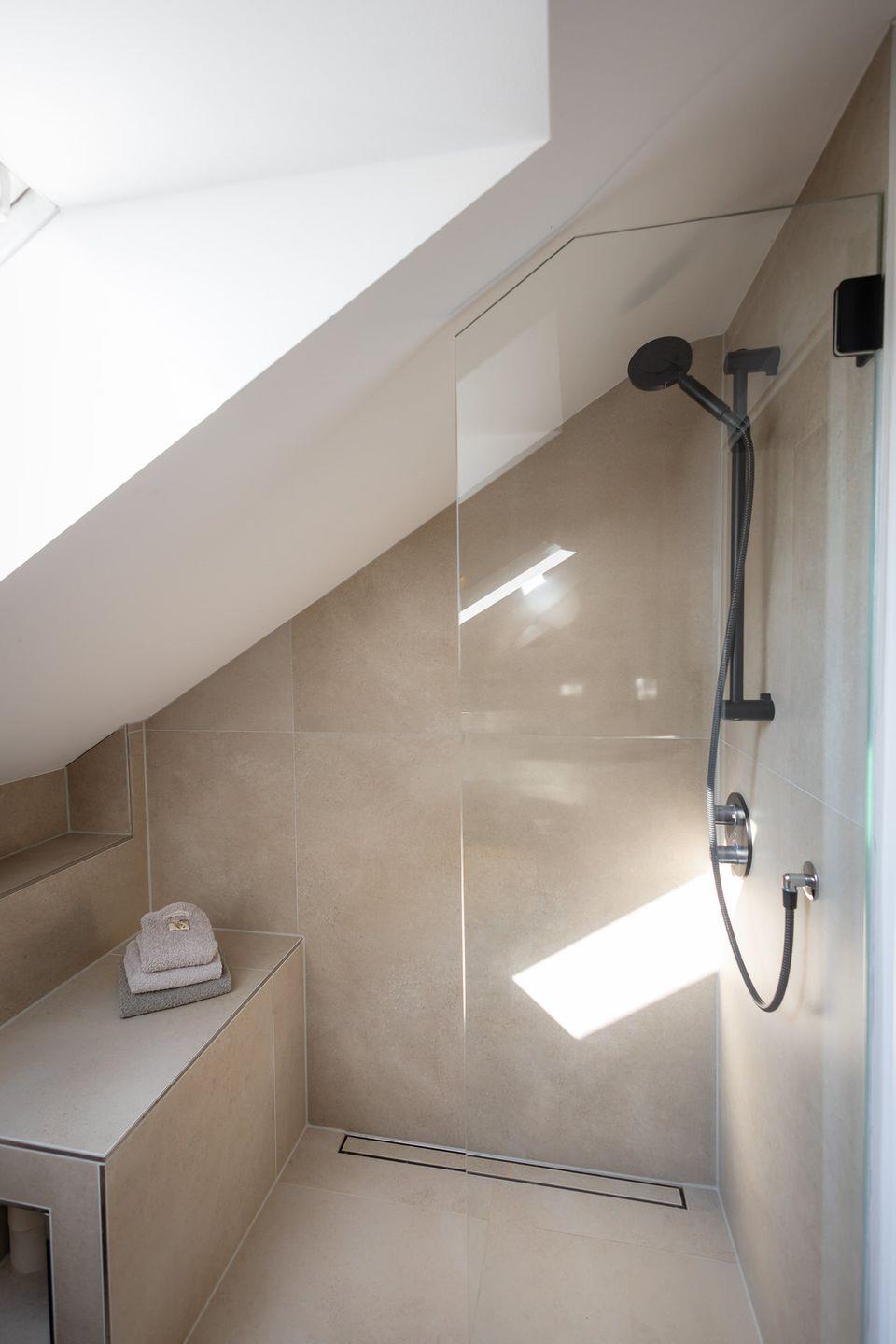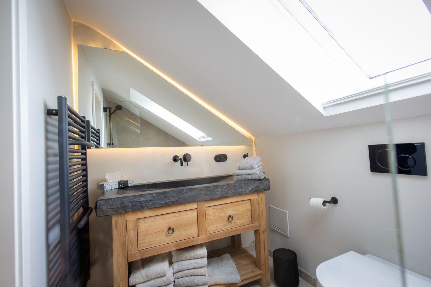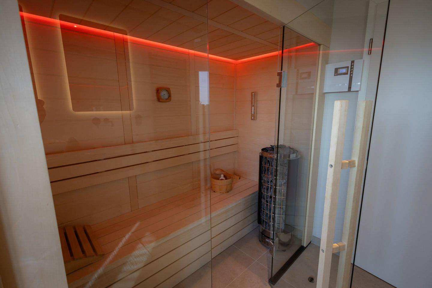 Im Obergeschoss befinden sich die drei Schlafzimmer sowie die beiden Duschbäder. Eines der Duschbäder ist en Suite gelegen und verfügt über eine eigene Sauna.