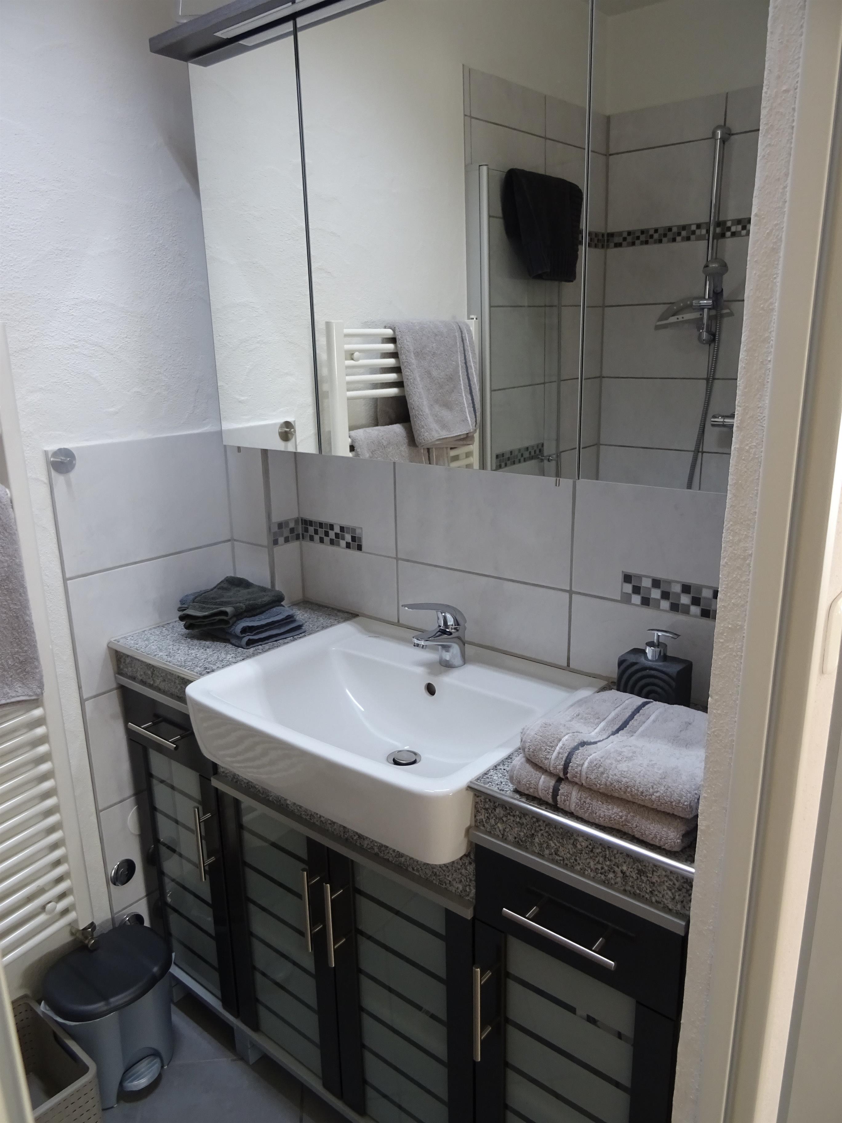 Ein separater Trockenraum mit Waschmaschine und Trockner steht Ihnen als Mitnutzer zur Verfügung. Wanderschuhe und Kleidung können entsprechend versorgt werden. Eine kleine Hausapotheke, die jedoch bestens gefüllt ist von "Armbinde" bis "Zeckenbissversorgung", steht Ihnen im Eingangsbereich ebenfalls kostenfrei zur Verfügung. Ein separater Abstellraum für mitgebrachte Sportgeräte, Fahrräder oder Wanderutensilien, befindet sich direkt neben den Garagen.