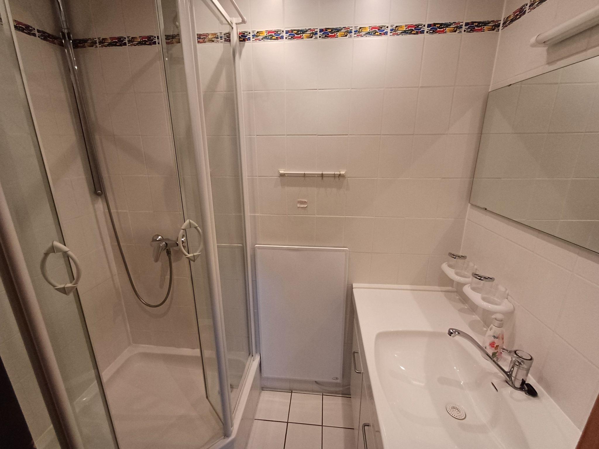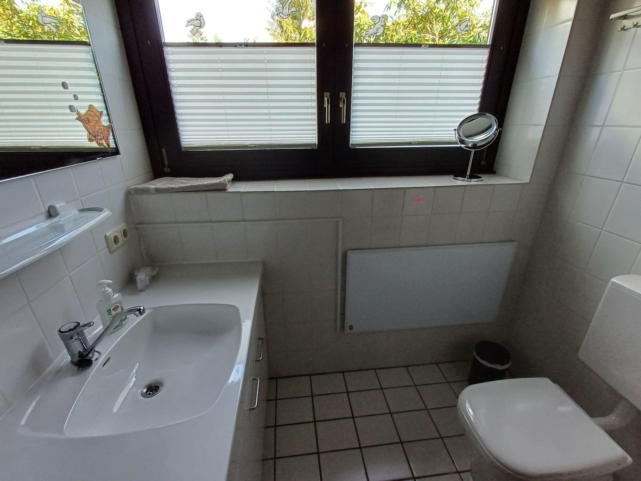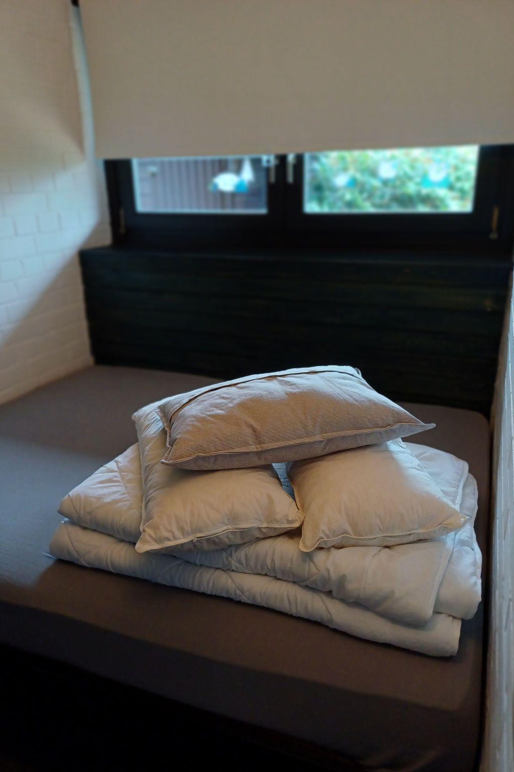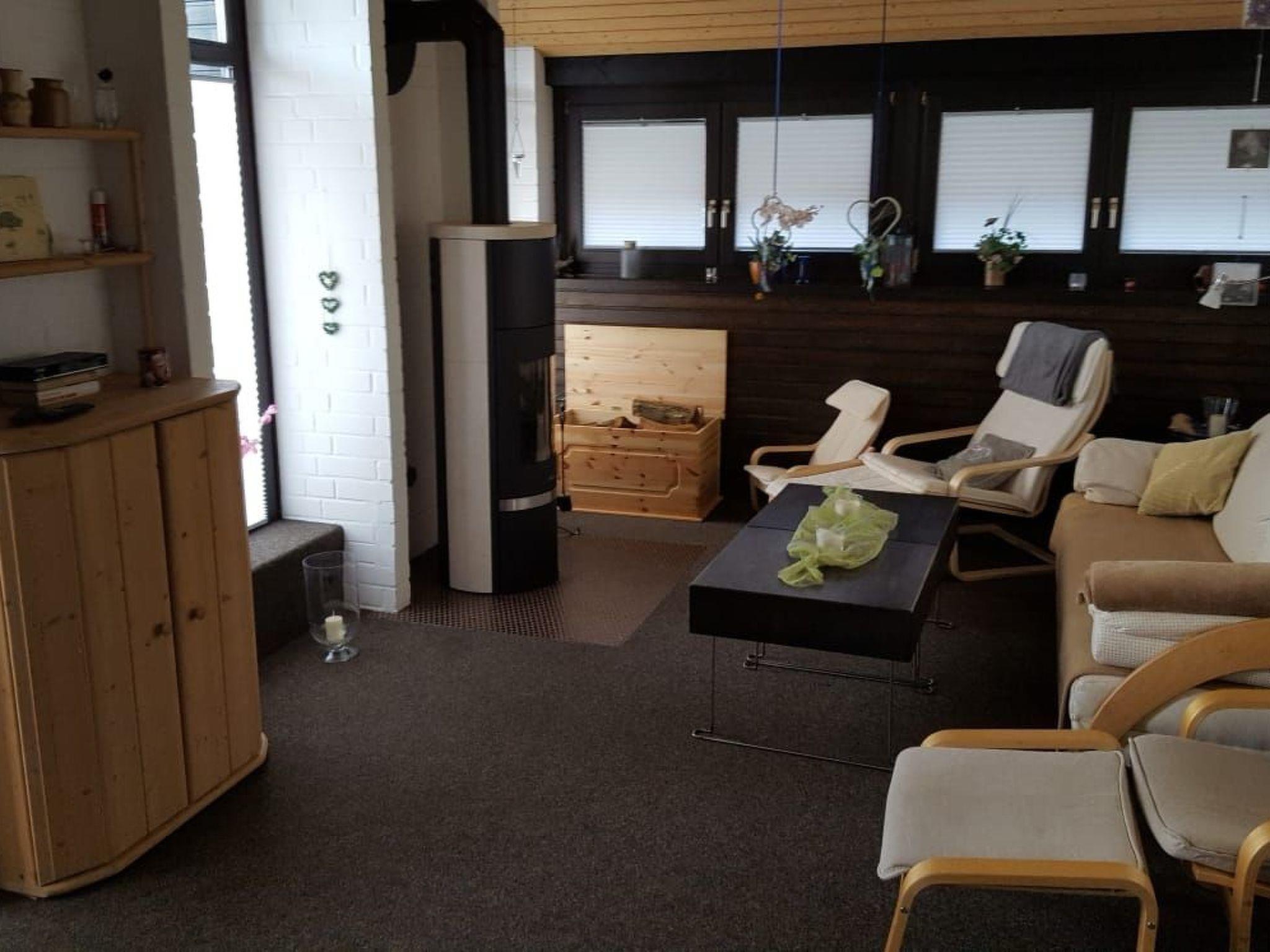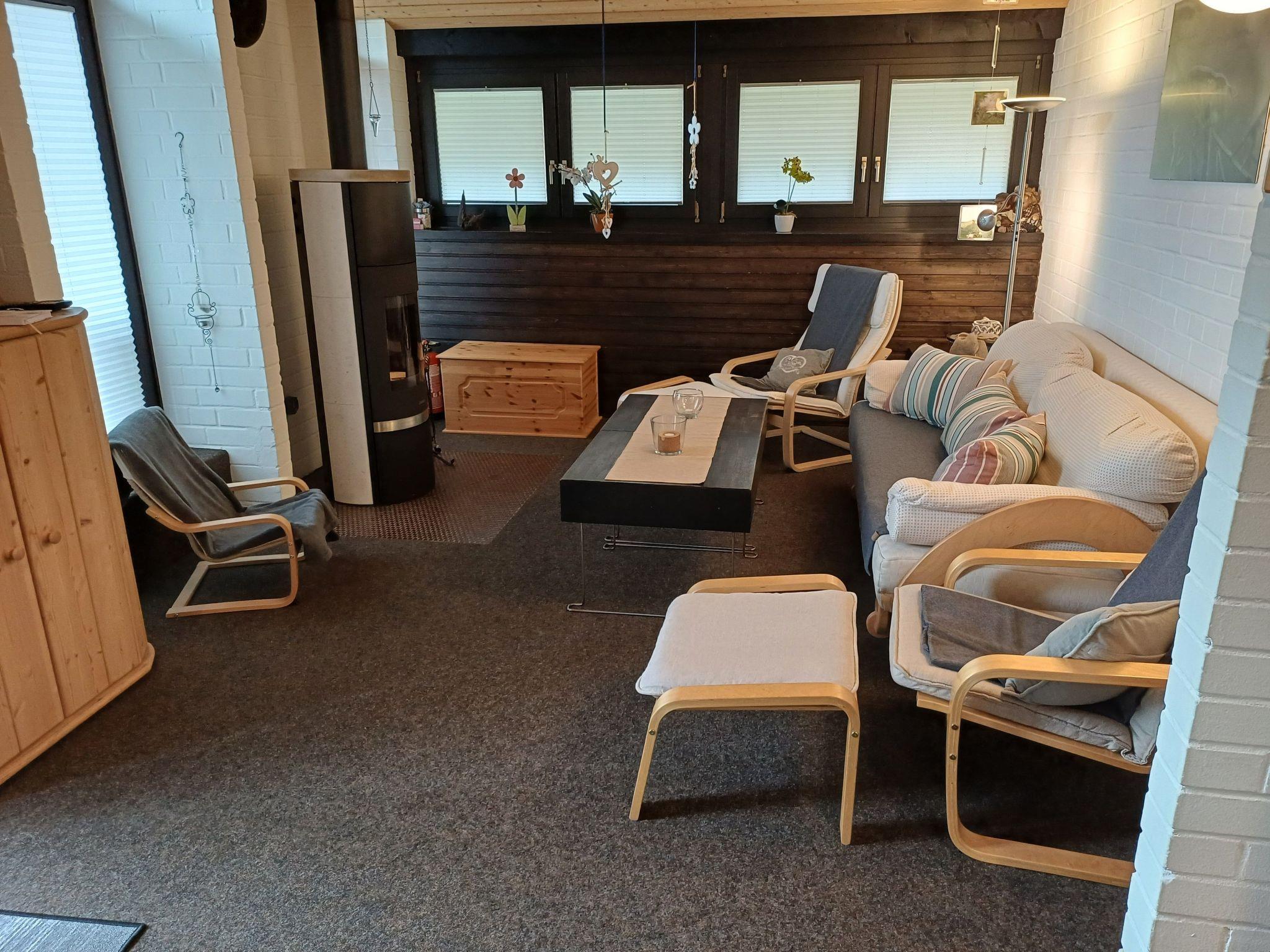Inside, you will find a bright and friendly living atmosphere with an inviting view of the garden. The central living area is enhanced by a warming wood-burning stove, which creates a cosy atmosphere, especially in the winter months. A perfectly equipped fitted kitchen, separated from the dining area only by a counter, offers plenty of space for communal meals at the table for up to 6 people. The accommodation is further divided into a separate toilet and a shower, each with a washbasin, as well as three cosy bedrooms. 1 room has a comfortable 2 x 1.6 metre bed with 2 single mattresses and plenty of storage space and 2 rooms each have a 1.9 x 1.4 metre bed for a carefree stay.