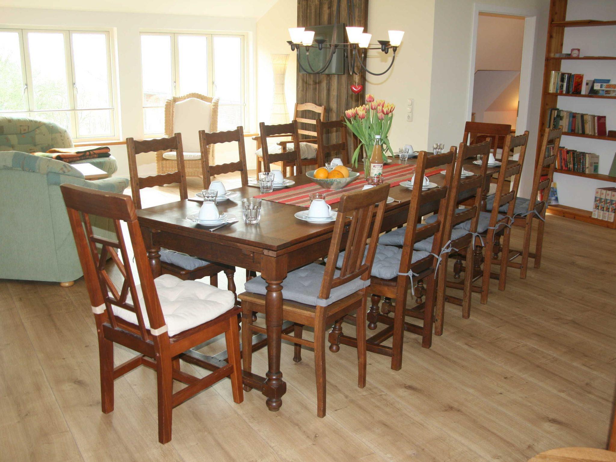 XL-Urlaub im Landhaus (200m², 5 Schlafräume, 2 Duschbäder, max. 12 Personen). Zwei benachbarte Fewos im Ober- und Dachgeschoss mit gemeinsamem Hauseingang im Landhaus kombiniert als XL-Unterkunft für Großfamilien und Kleingruppen: