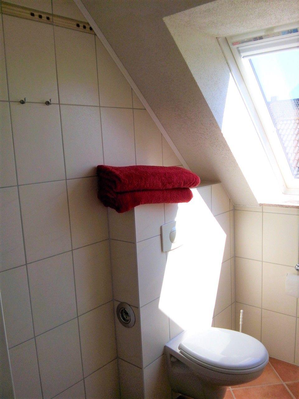 Das Badezimmer hat eine Dusche.