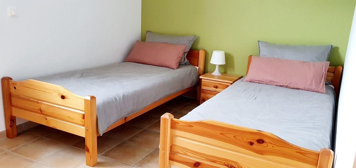 Im ersten Schlafzimmer steht ein Doppelbett und ein Kleiderschrank. Das zweite Schlafzimmer ist mit zwei einzelnen Betten und einem Kleiderschrank möbliert.