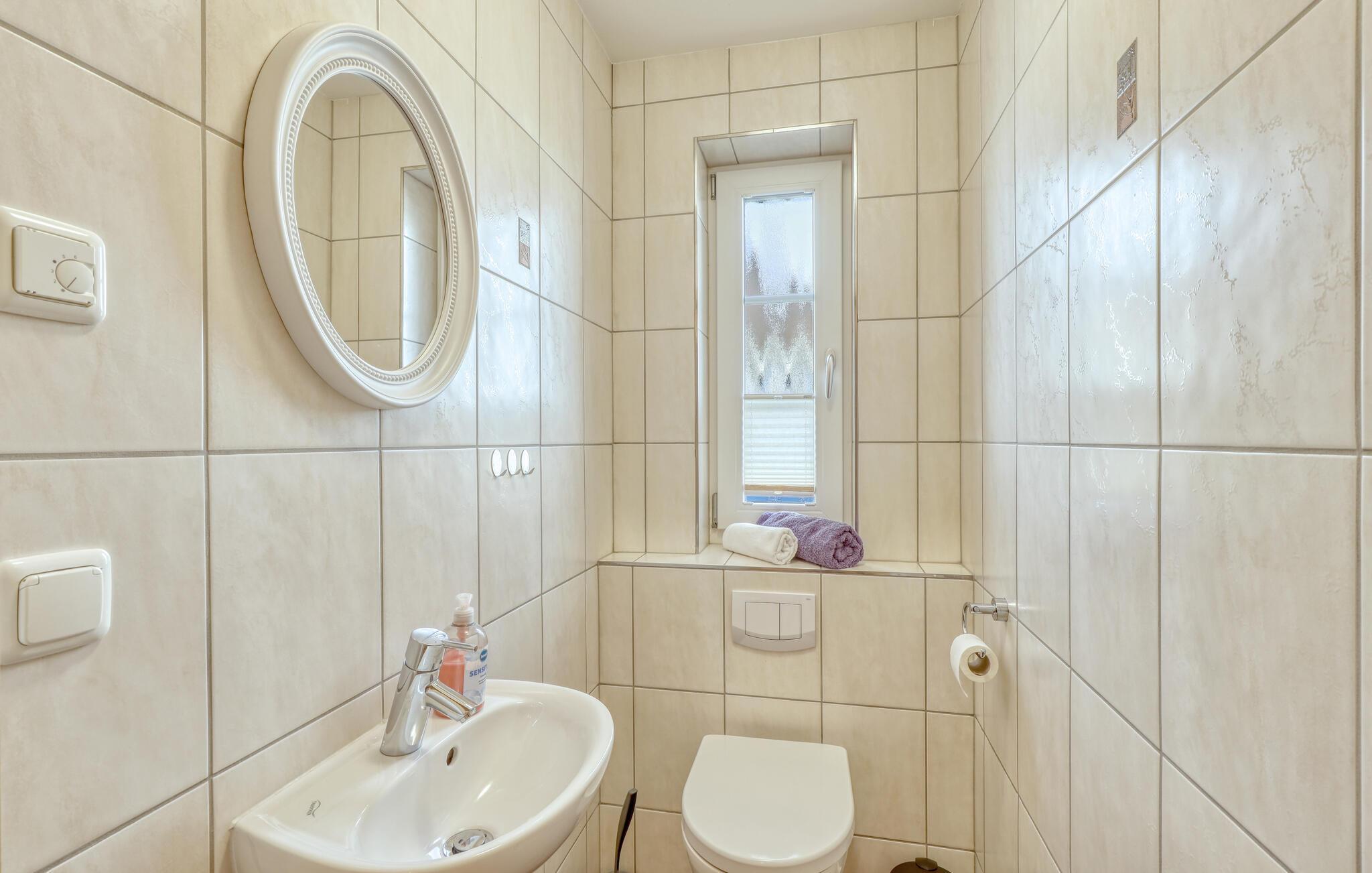 Her er det altså god plass til å tilbringe en herlig ferie på Rügen sammen med dem du er glad i. Om sommeren innbyr terrassen til soling, mens barna kan løpe rundt i den friske øyeluften. En liten, sjarmerende hagestue er også en del av feriehuset og gir deg plass til å oppbevare sportsutstyret ditt.