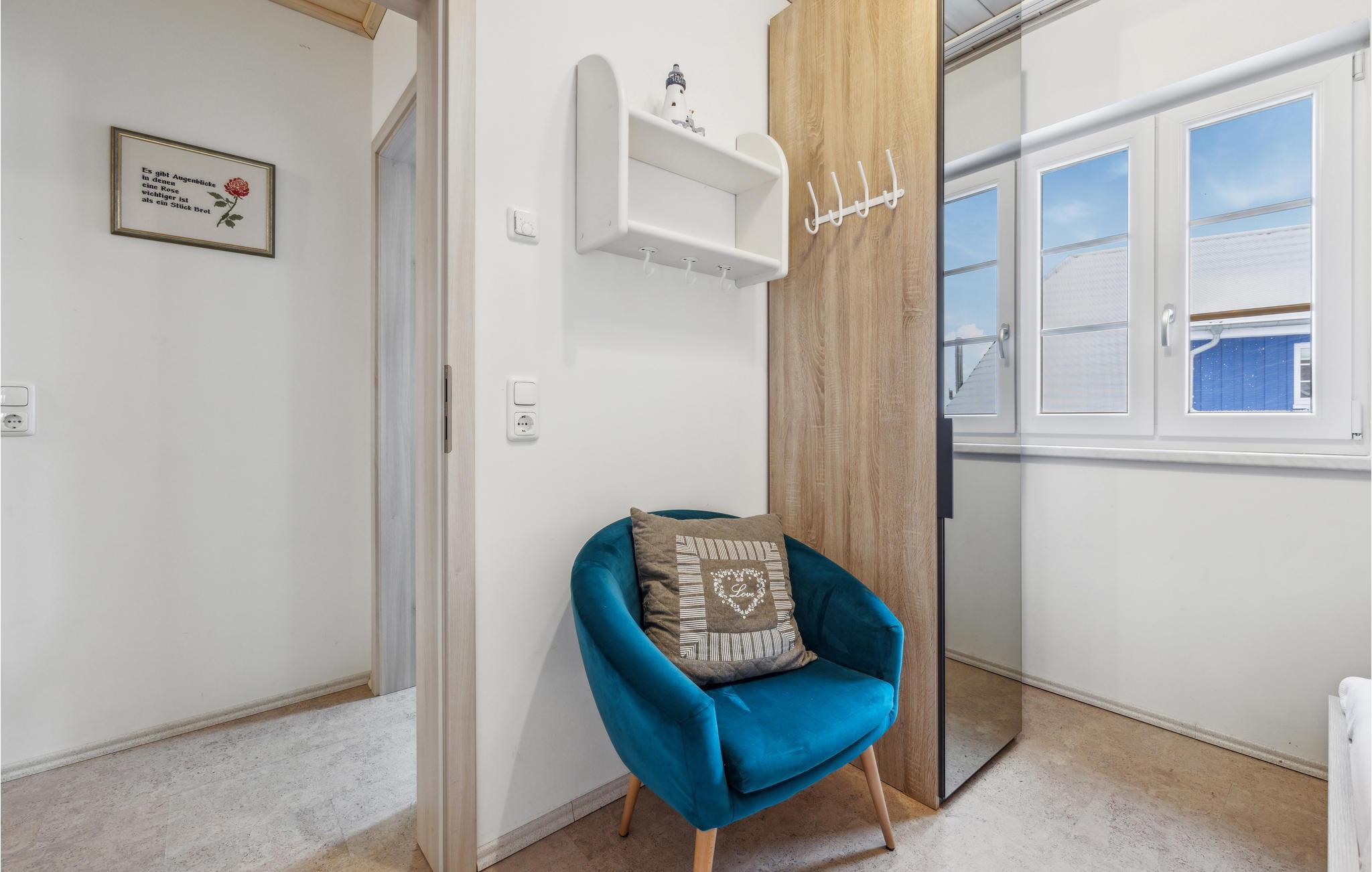 Denne komfortable tomannsboligen av høy kvalitet tar imot deg i to etasjer. I tillegg til de koselige soverommene, som lover deg privatliv, er den innbydende, komfortable og lyse stuen et samlingspunkt for familien når det skal lages mat, spises, lekes og slappes av. Det er fluenetting i stuen og på soverommene. Her er det tenkt på alt, så alt du trenger å gjøre er å slappe av og føle deg hjemme. Det ideelle stedet for å tilbringe en herlig ferie i et feriehus på Rügen sammen med dem du er glad i. Om sommeren innbyr terrassen til soling, mens barna kan løpe rundt i den friske øyluften. Et lite, sjarmerende hagehus er også en del av feriehuset og gir deg plass til å oppbevare sportsutstyret ditt.
