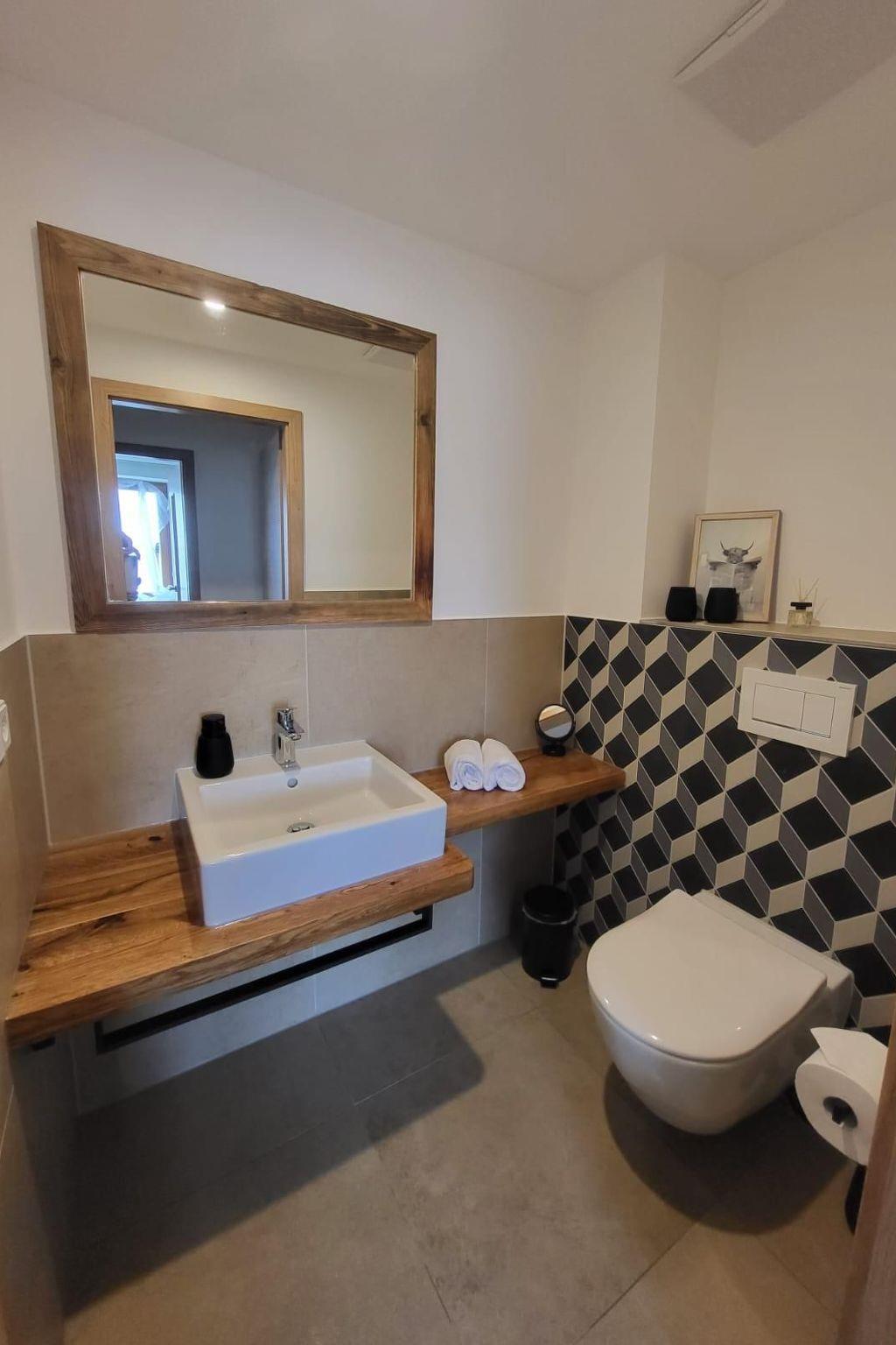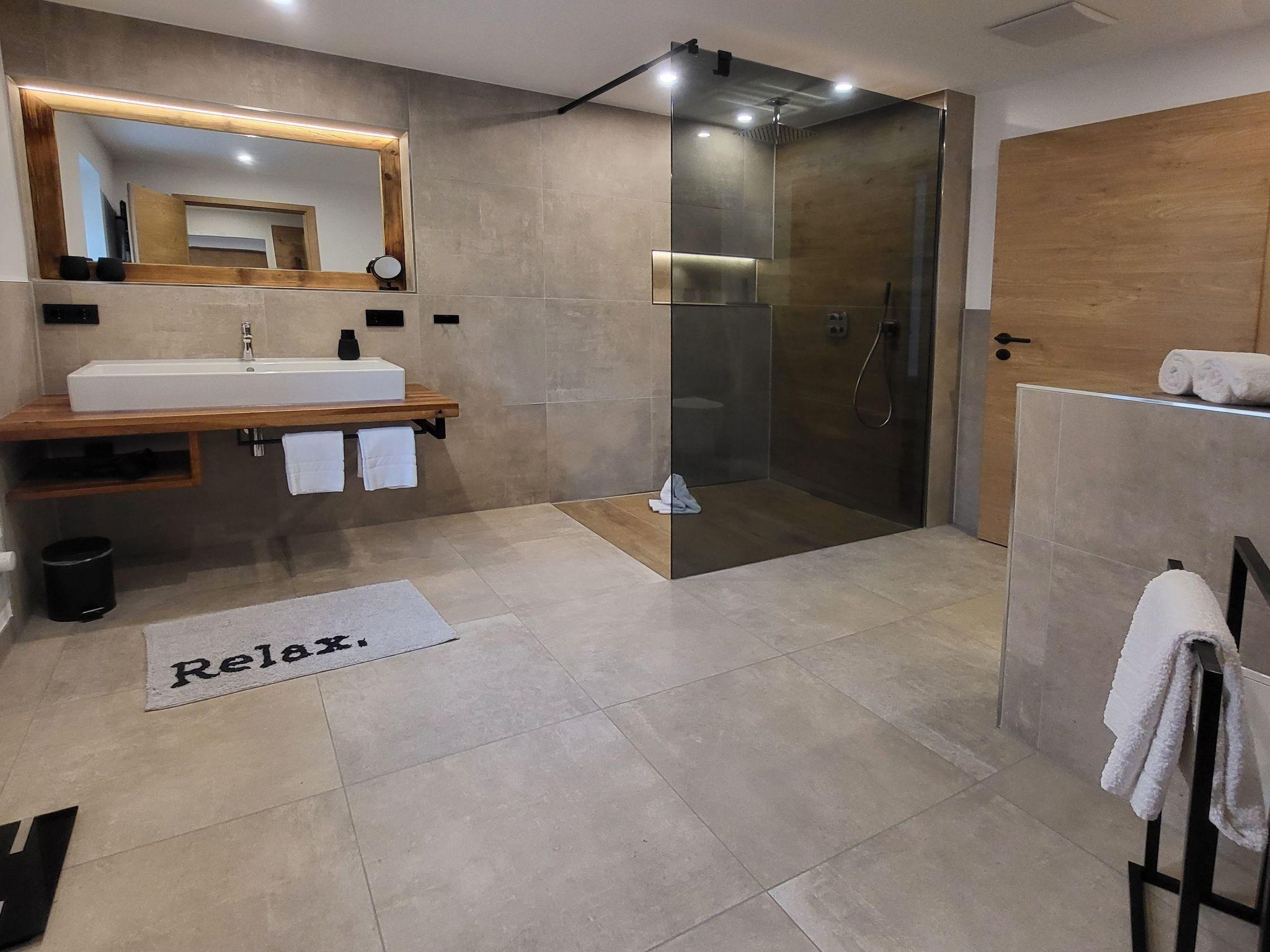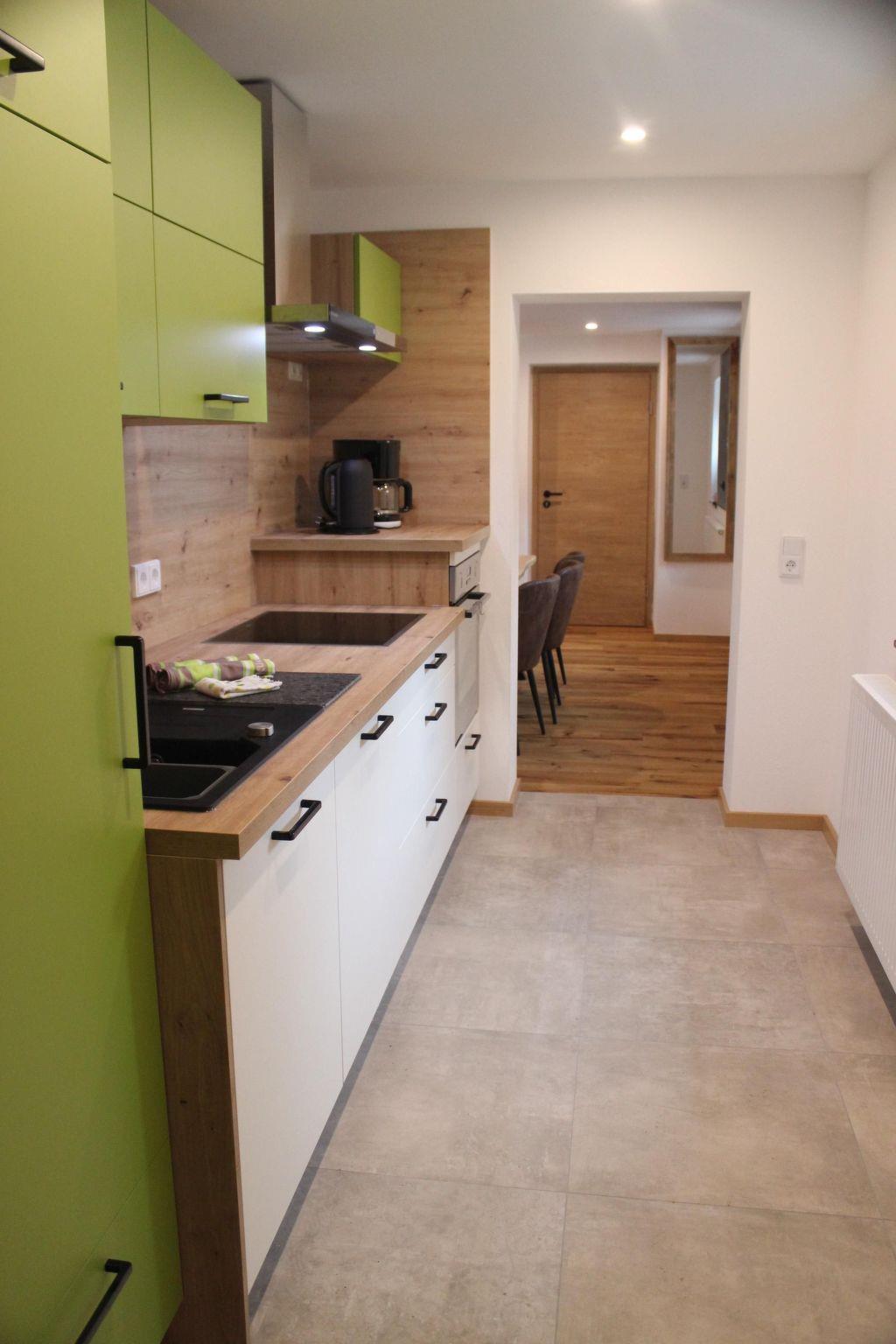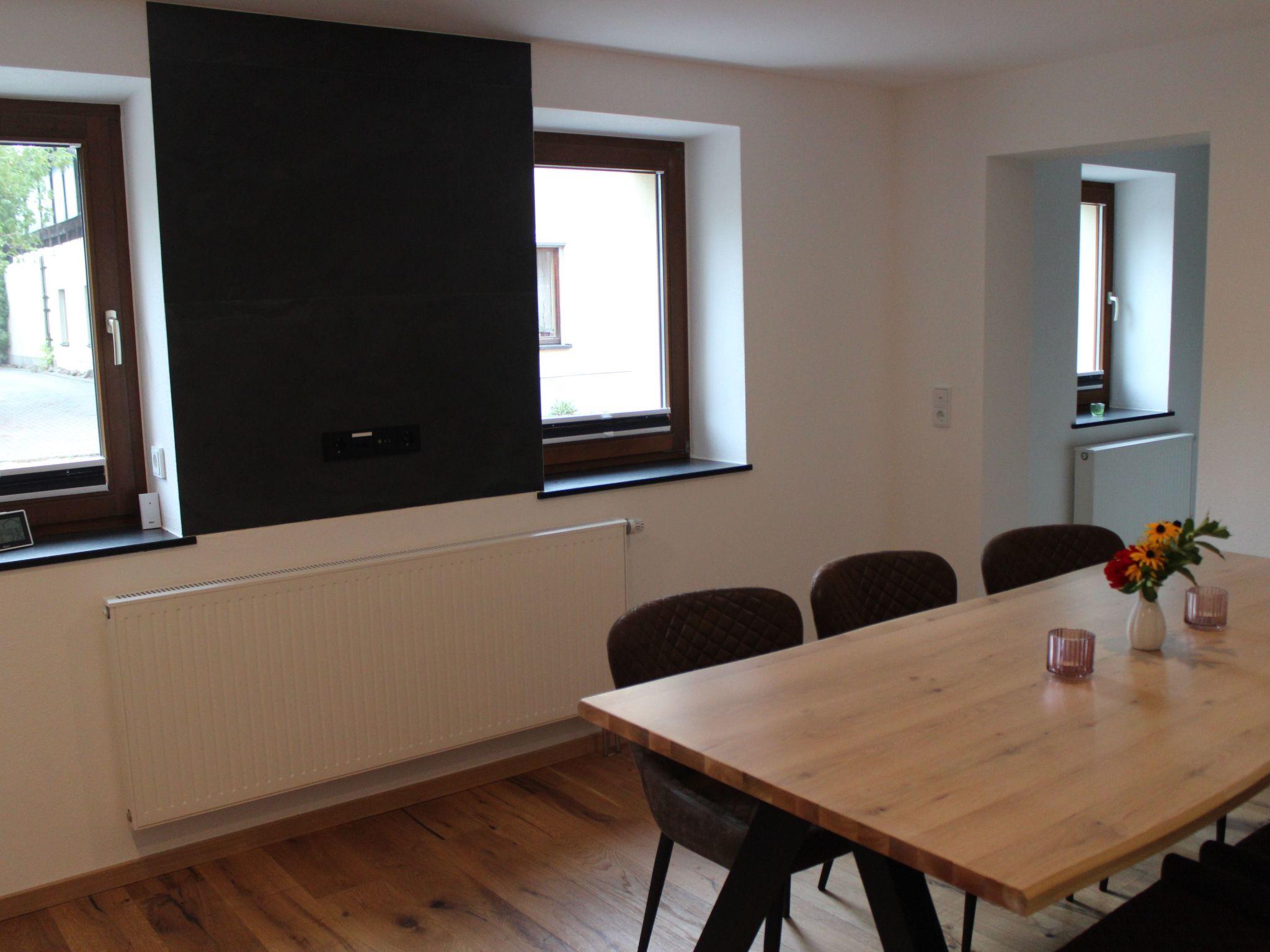 On 80 m² of living space, you will find everything you need to recover from excursions, hiking or cycling tours in a modern holiday flat, including a large shower and a comfortable sofa, TV, DVD player and hi-fi system, as well as a fridge, coffee machine, kettle, toaster, egg cooker, blender, induction hob and oven. The holiday flat on the ground floor offers space for 2 to 4 people and consists of a living room, dining room, bedroom, children's/bedroom, kitchen and bathroom with shower, WC and a guest WC. The flat was completed in September 2022.