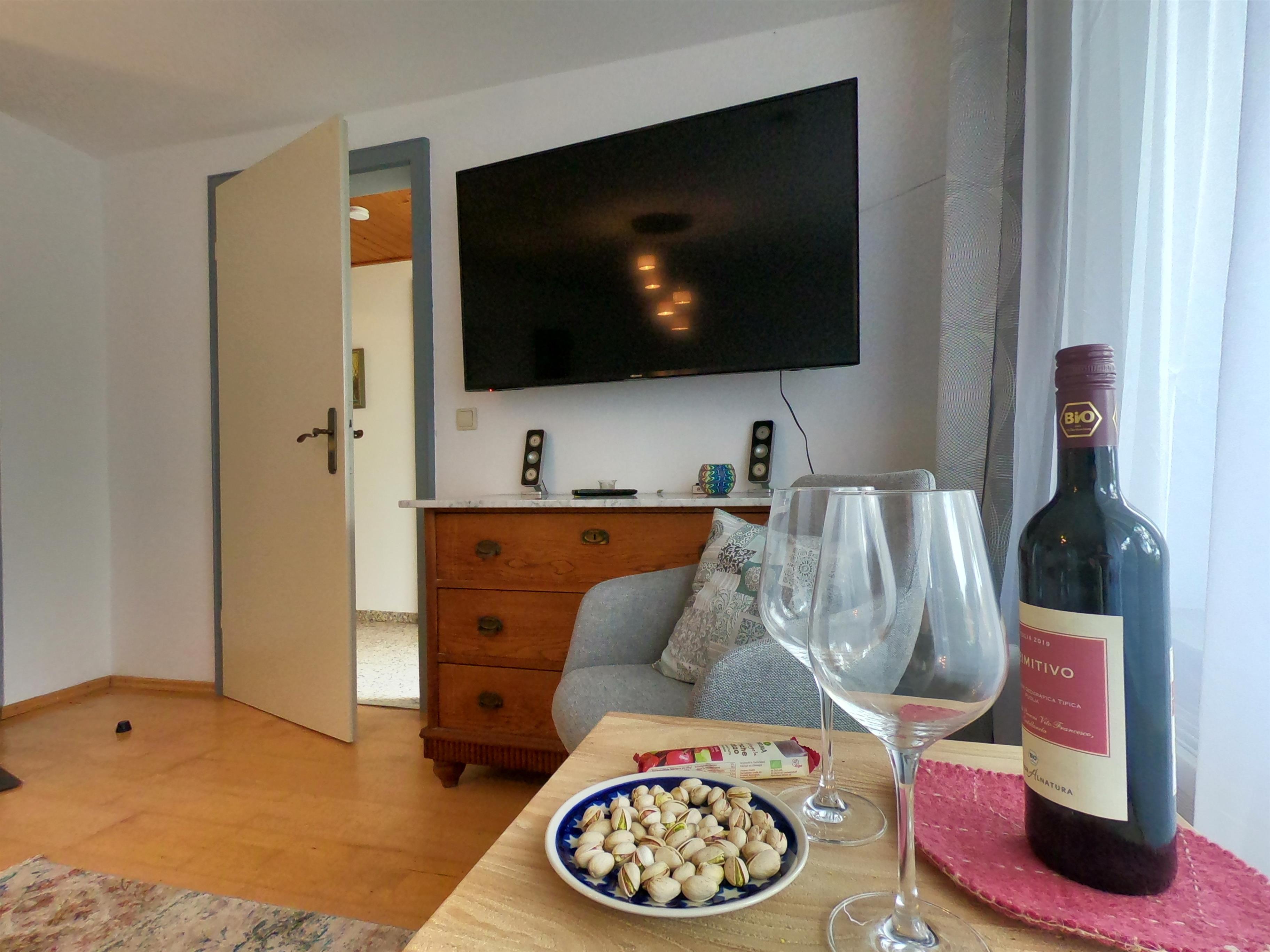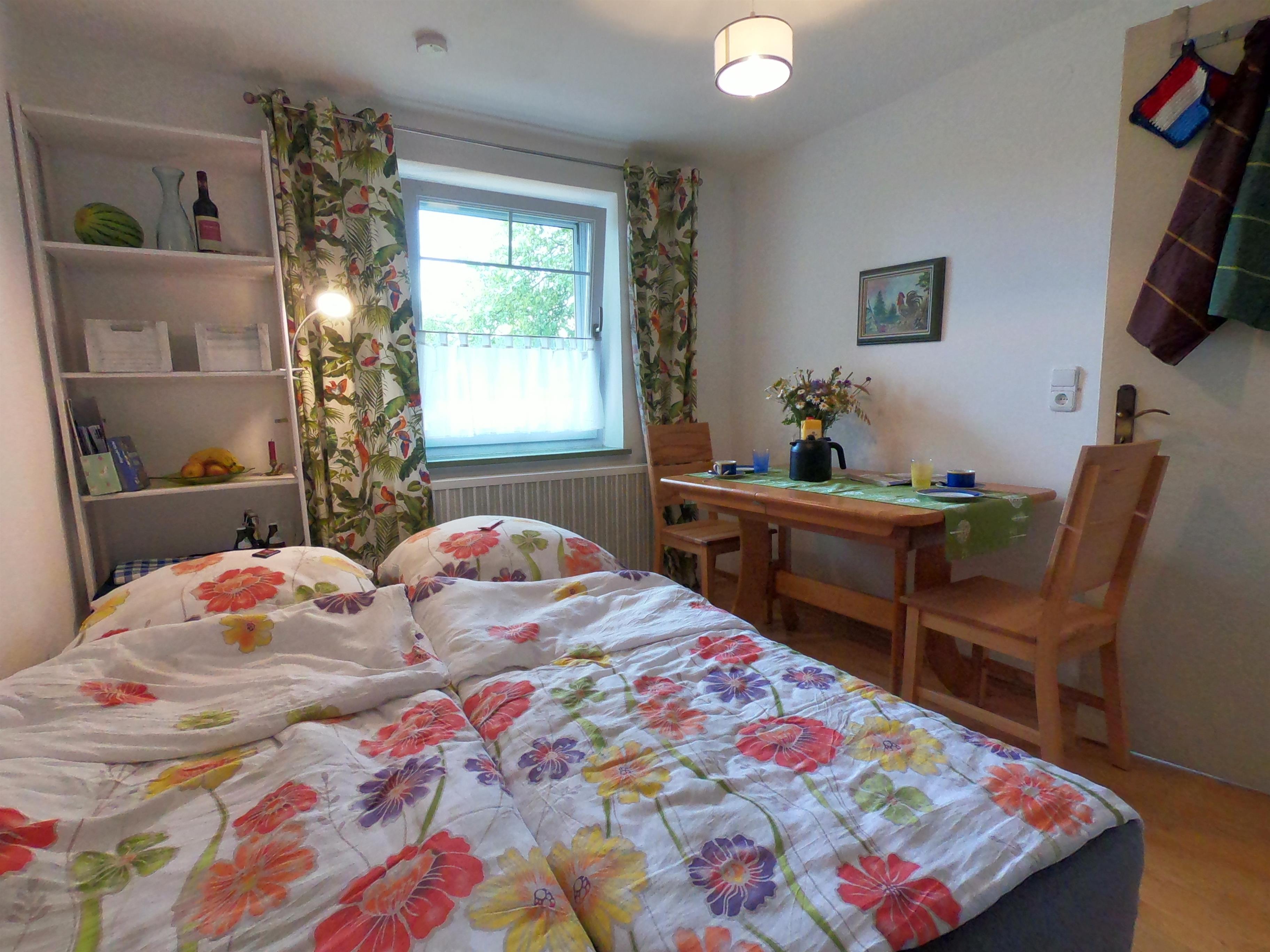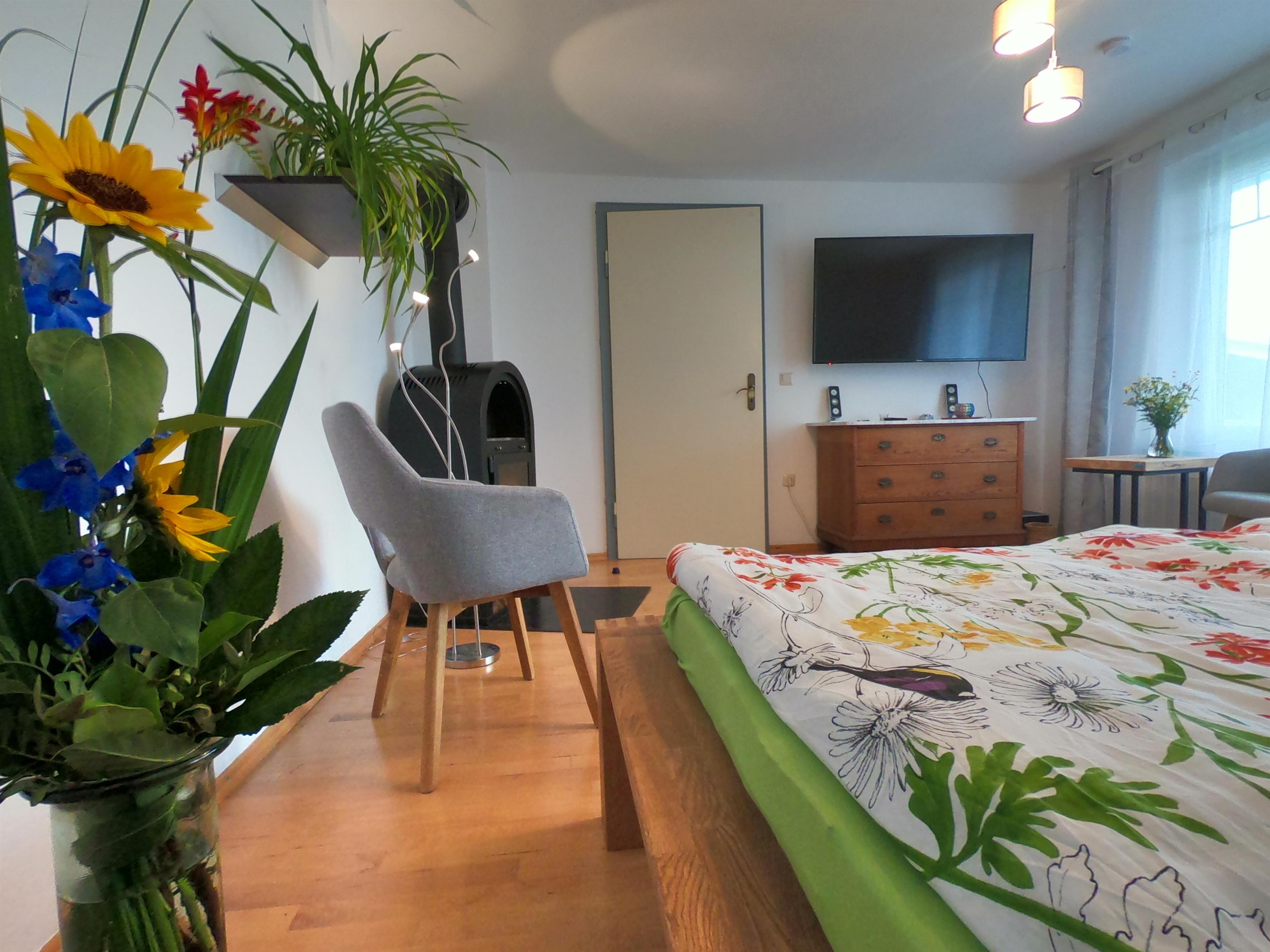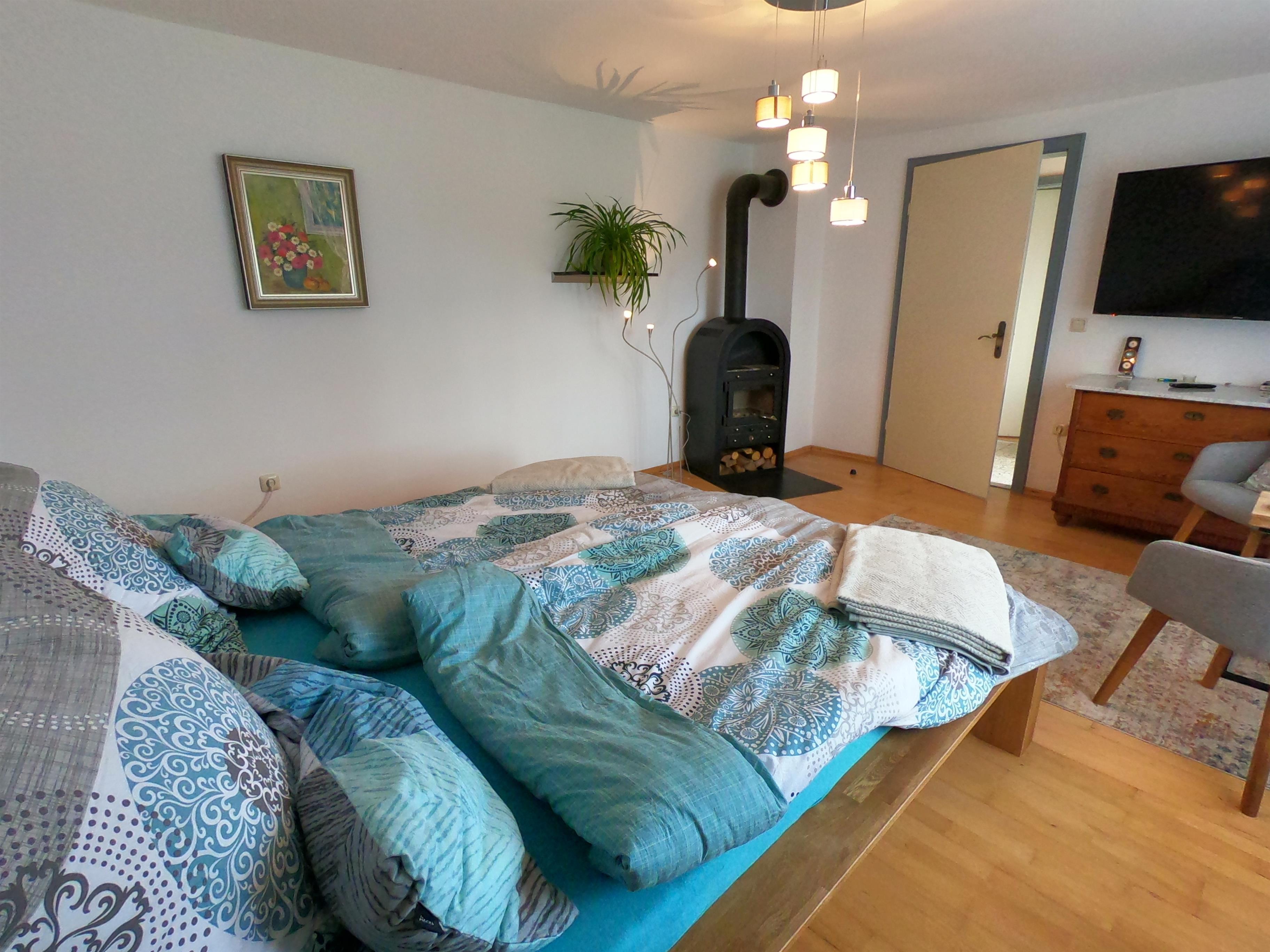 Gönnen Sie sich und der Umwelt Gutes! Geschmackvoll eingerichtete, nachhaltige Ferienwohnung im Erdgeschoß mit separatem Eingang, schnellem W-LAN, geräumigem Schlaf,-Wohnzimmer mit Kaminofen und großem internetfähigen TV, separater Küche mit Esstisch und Schlafcoach, Bad, kleinem Hauswirtschaftsraum mit Waschmaschine, Terrasse, Garten und PKW-Stellplatz auf dem Grundstück. 2024 haben wir wieder einige unserer Vorsätze zu mehr Nachhaltigkeit und Klimaschutz umgesetzt: Das ganze Haus wird bereits seit Jahren mit Ökostrom versorgt. Seit Februar wird es nun mittels Wärmepumpe geheizt; der Strom kommt von der hauseigenen Photovoltaikanlage. Ihr Duschwasser erwärmt im Sommer die Solarthermie auf dem Dach. Eine Wallbox zum Laden Ihres E-Autos steht auf dem Grundstück zur Verfügung.